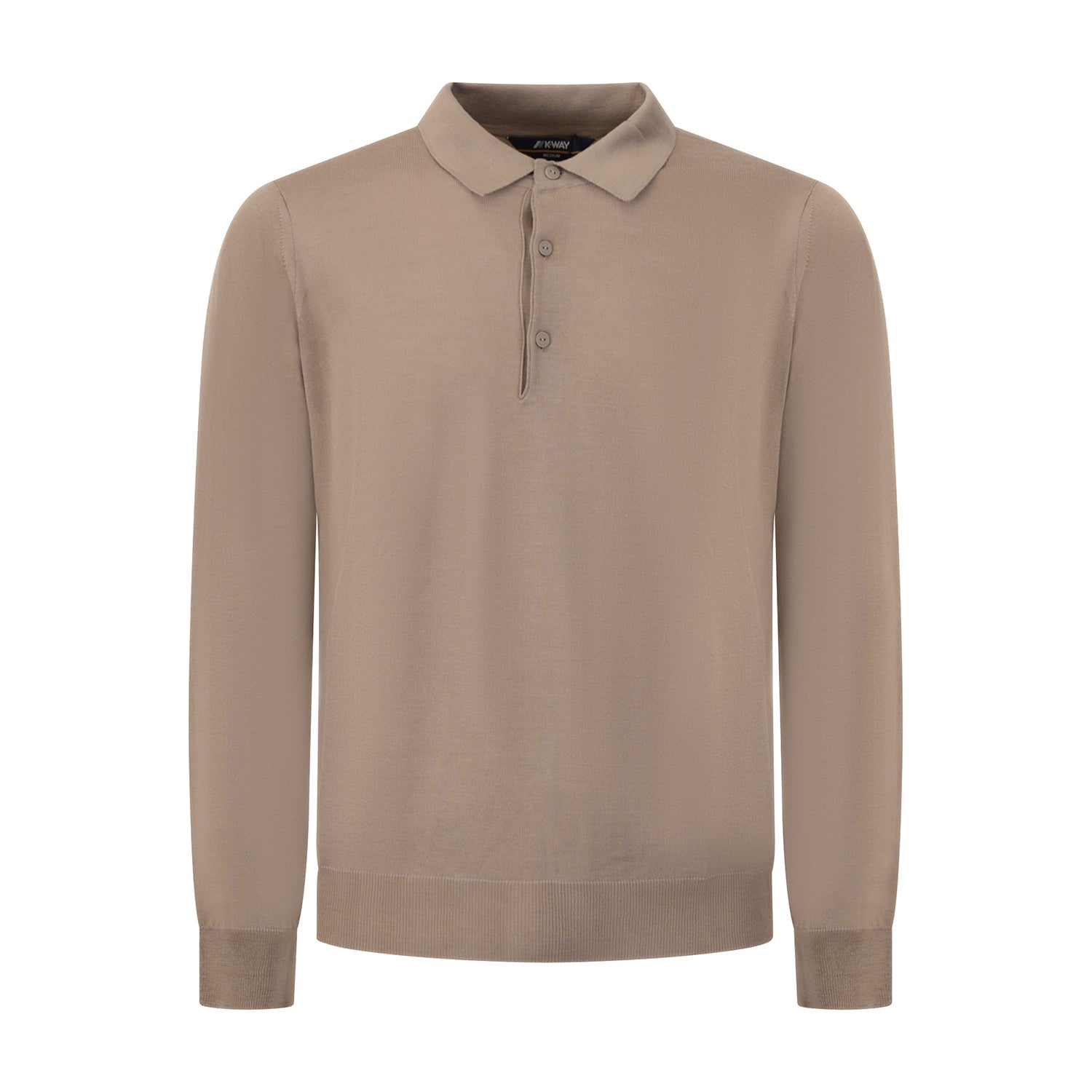 Polo REY WOOL beige di K-WAY in lana merinos con 3 bottoni, fondo e polsini a costine.