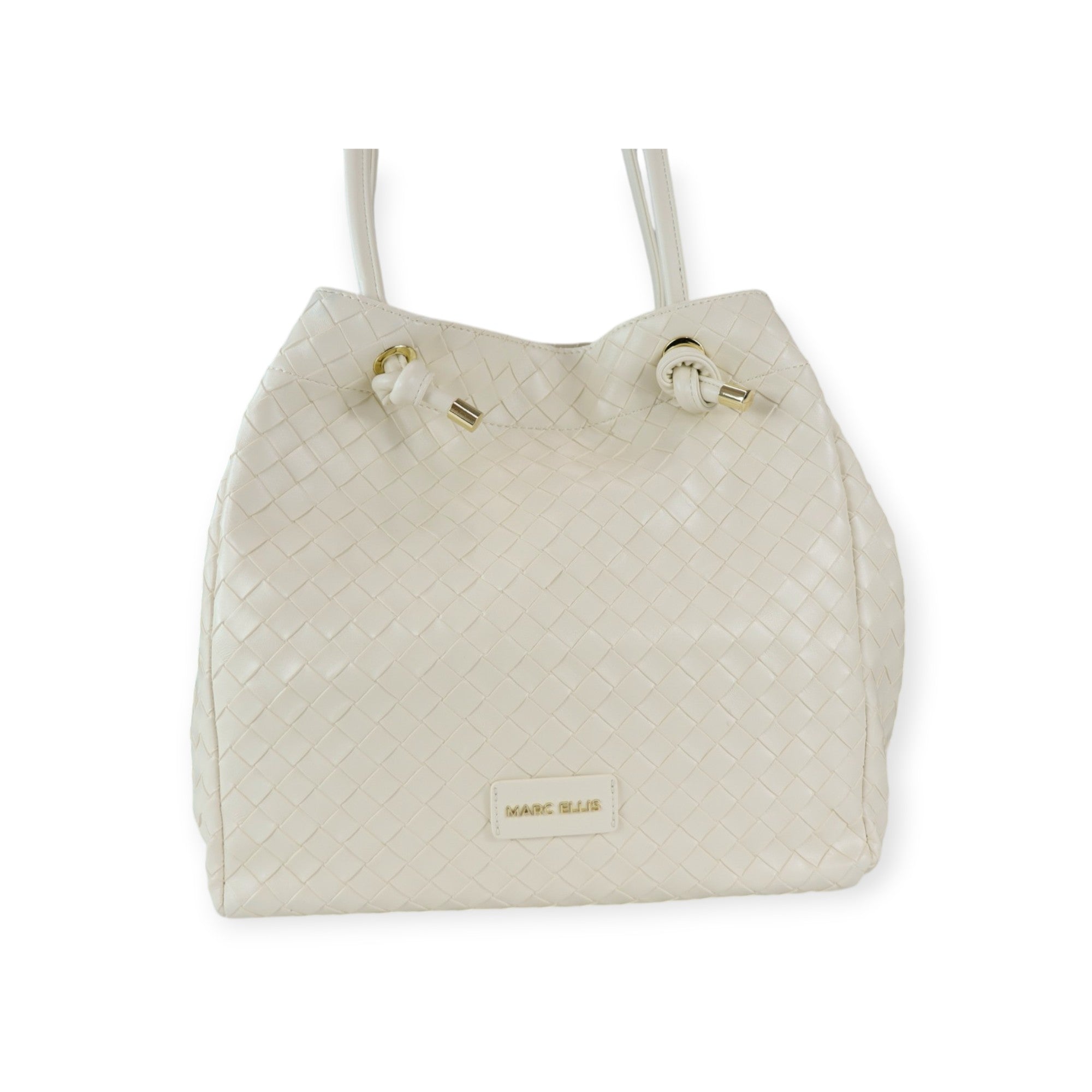 MARC ELLIS BRYAN milk shopping bag in faux leather with woven effect, double handle, button closure, metal logo. Dimensions 34x33x20 cm.