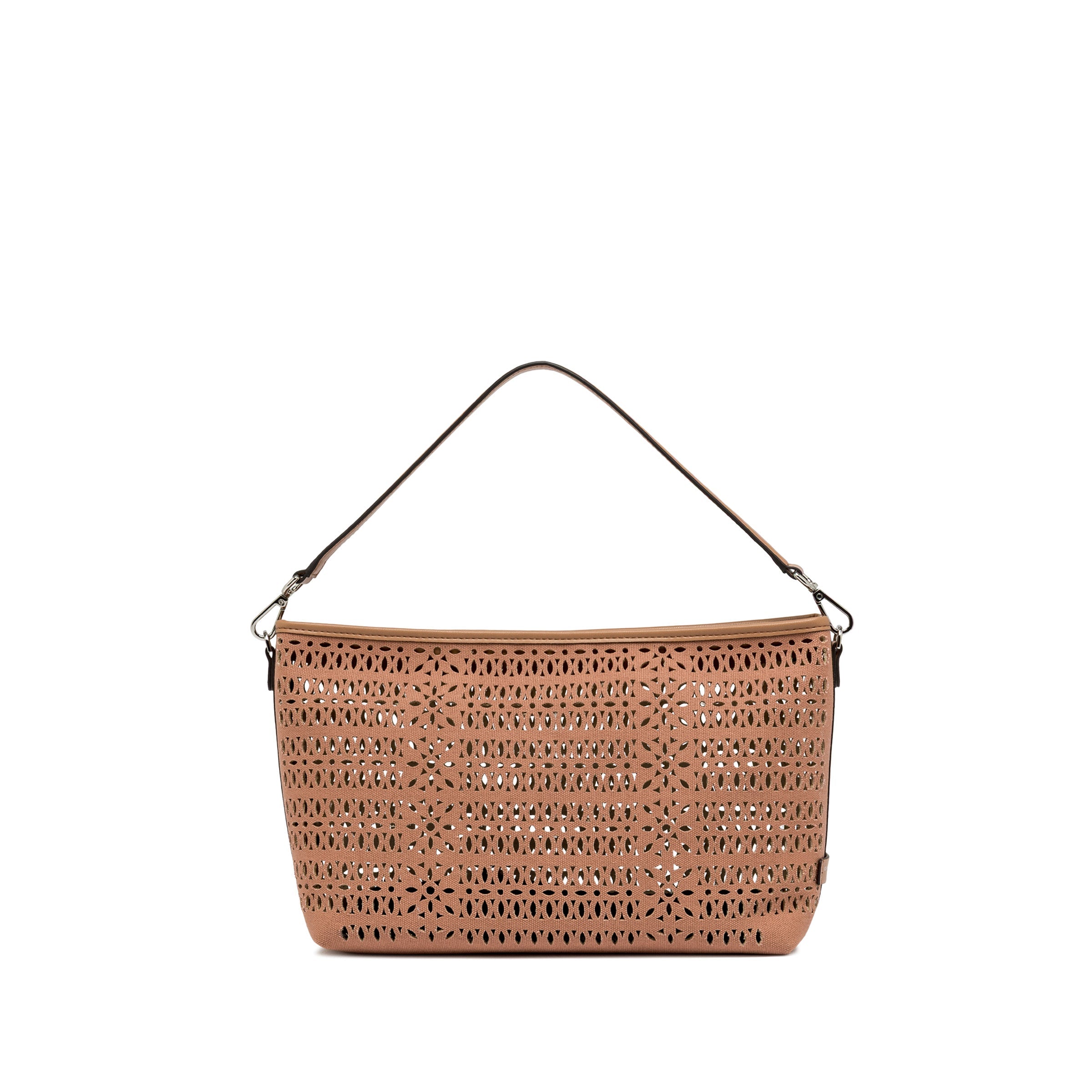 GIANNI CHIARINI powder pink shoulder bag in perforated canvas, zip closure, powder pink leather trims, matching internal leather shoulder strap. Measures 36x20x11 cm.