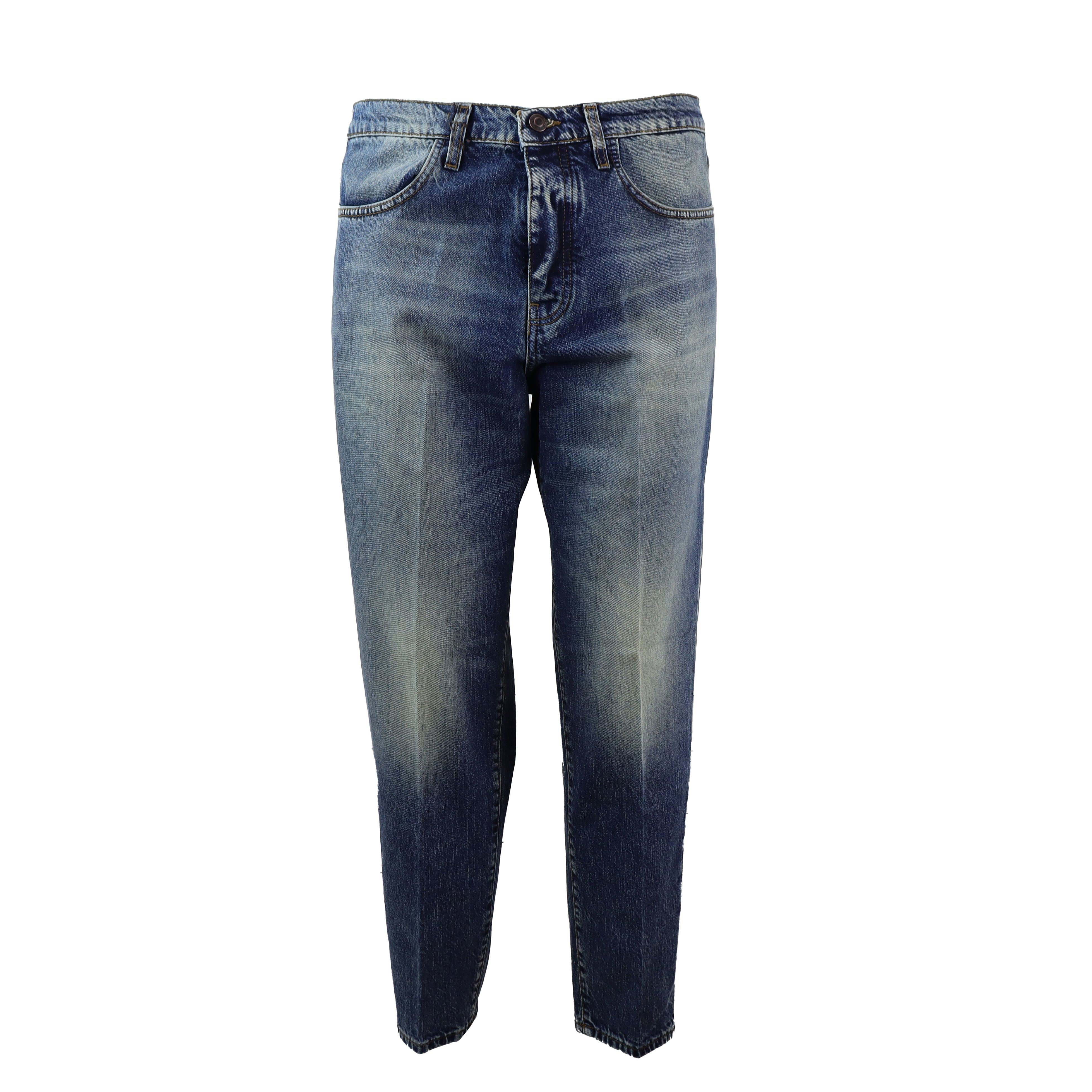 BONHEUR MILANO dark NIKKO jeans in cotton with 5-pocket style, button closure. Carrot fit, 16 cm hem in size 30/44.