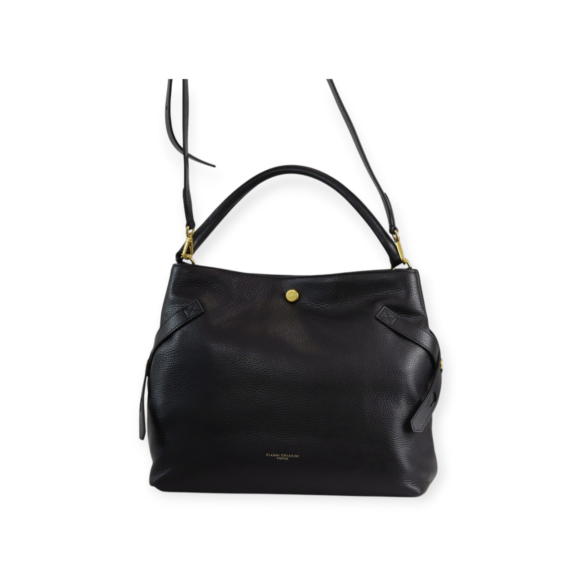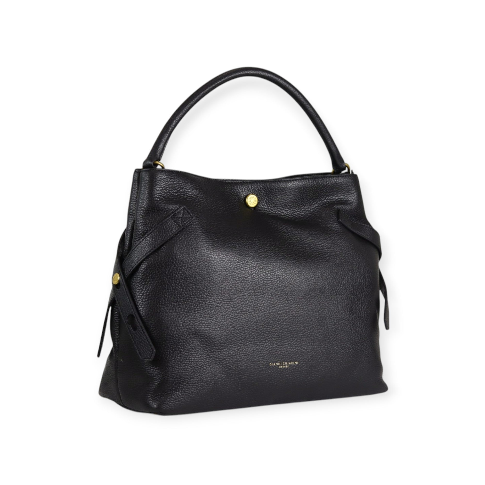 GIANNI CHIARINI black hammered leather handbag, single handle, internal shoulder strap. Measures 37x32x14 cm.