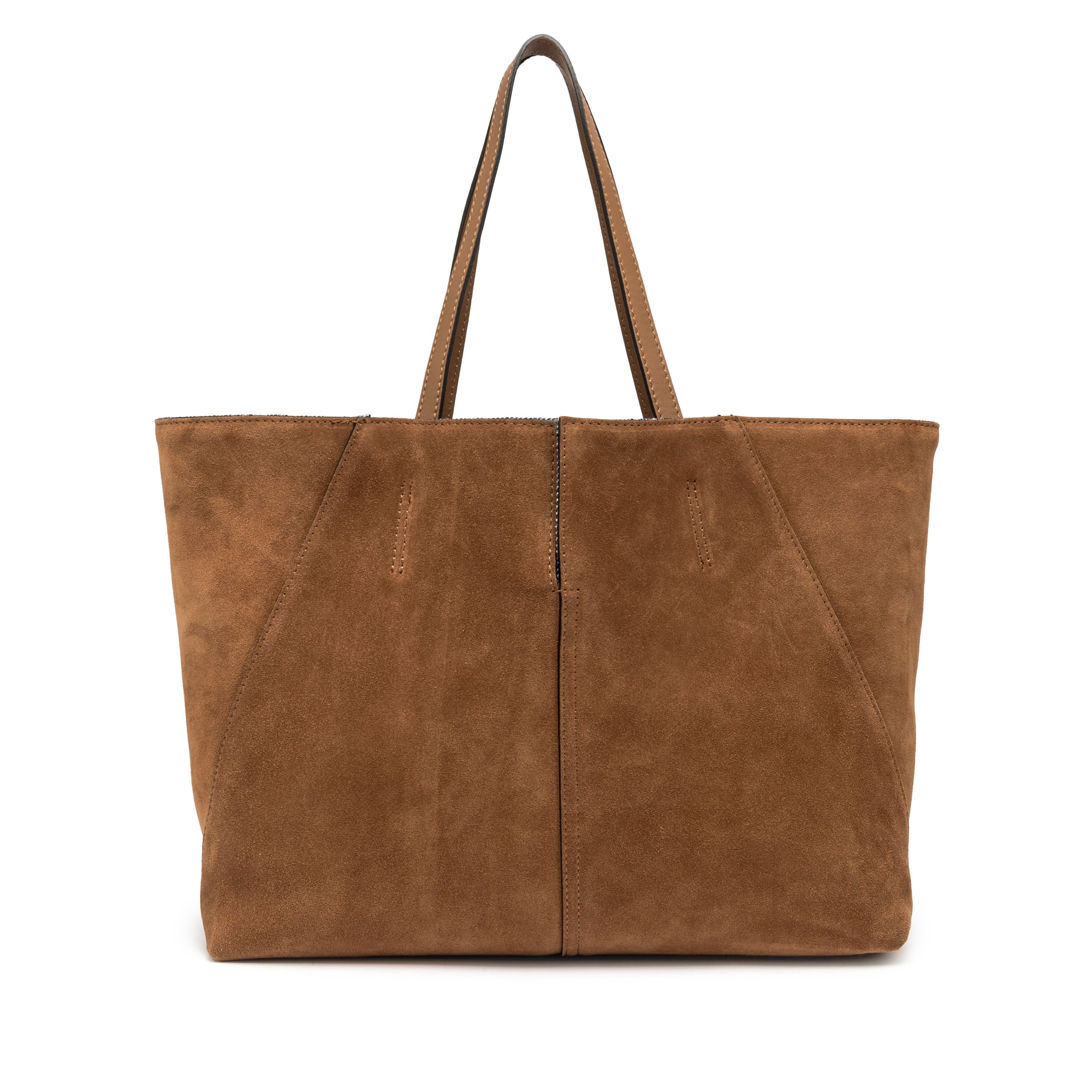 GIANNI CHIARINI leather shopper in suede with double handle, reversible with denim fabric interior. Measures 53x32x13 cm.