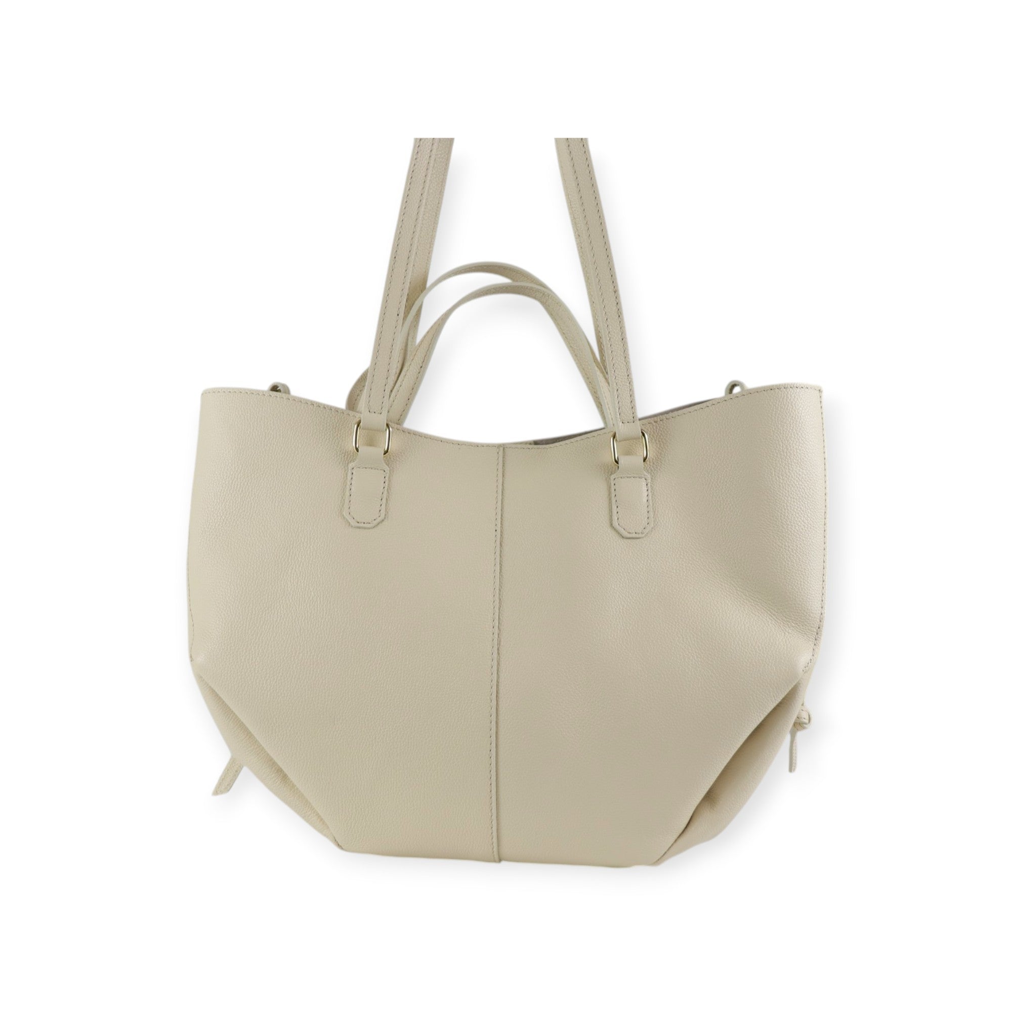 SIRIUS beige shopping bag by MARC ELLIS in leather with a trapeze shape, double long handles and double shorter handles, metal logo, matching internal clutch bag. Dimensions 40x31x8 cm