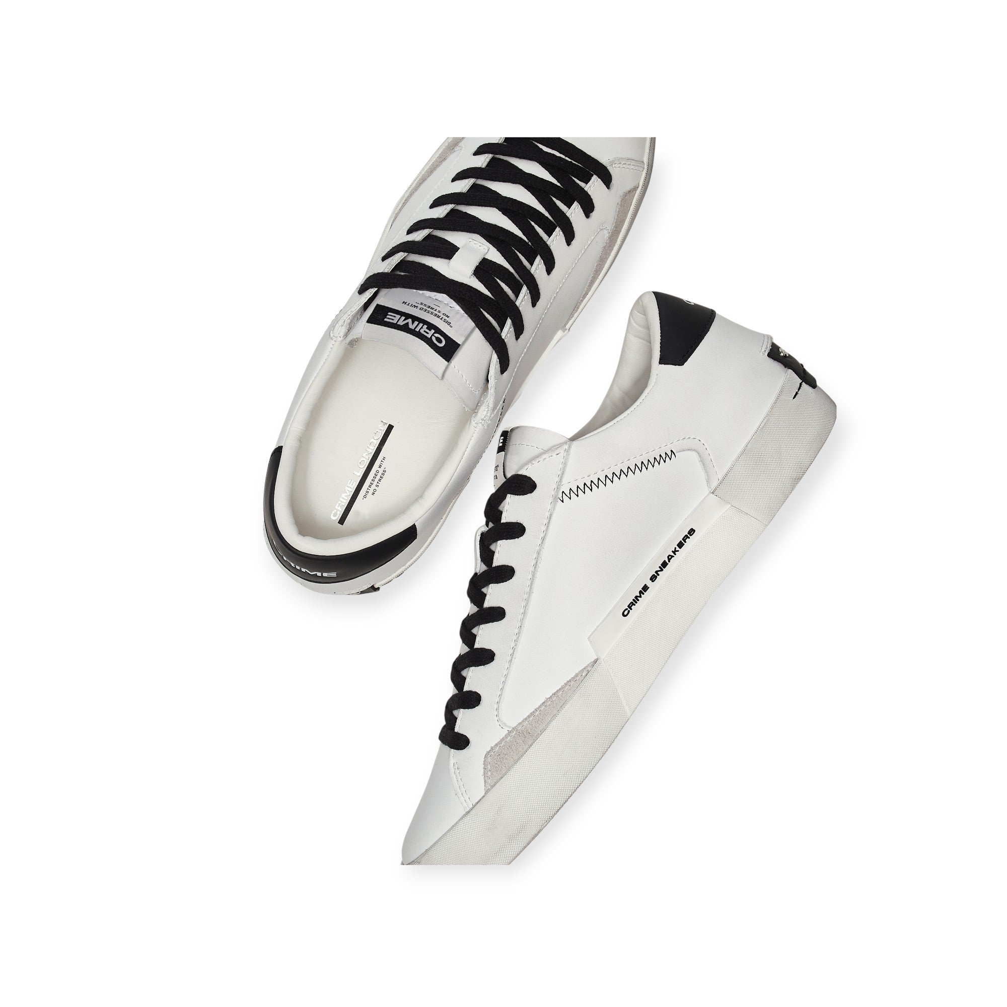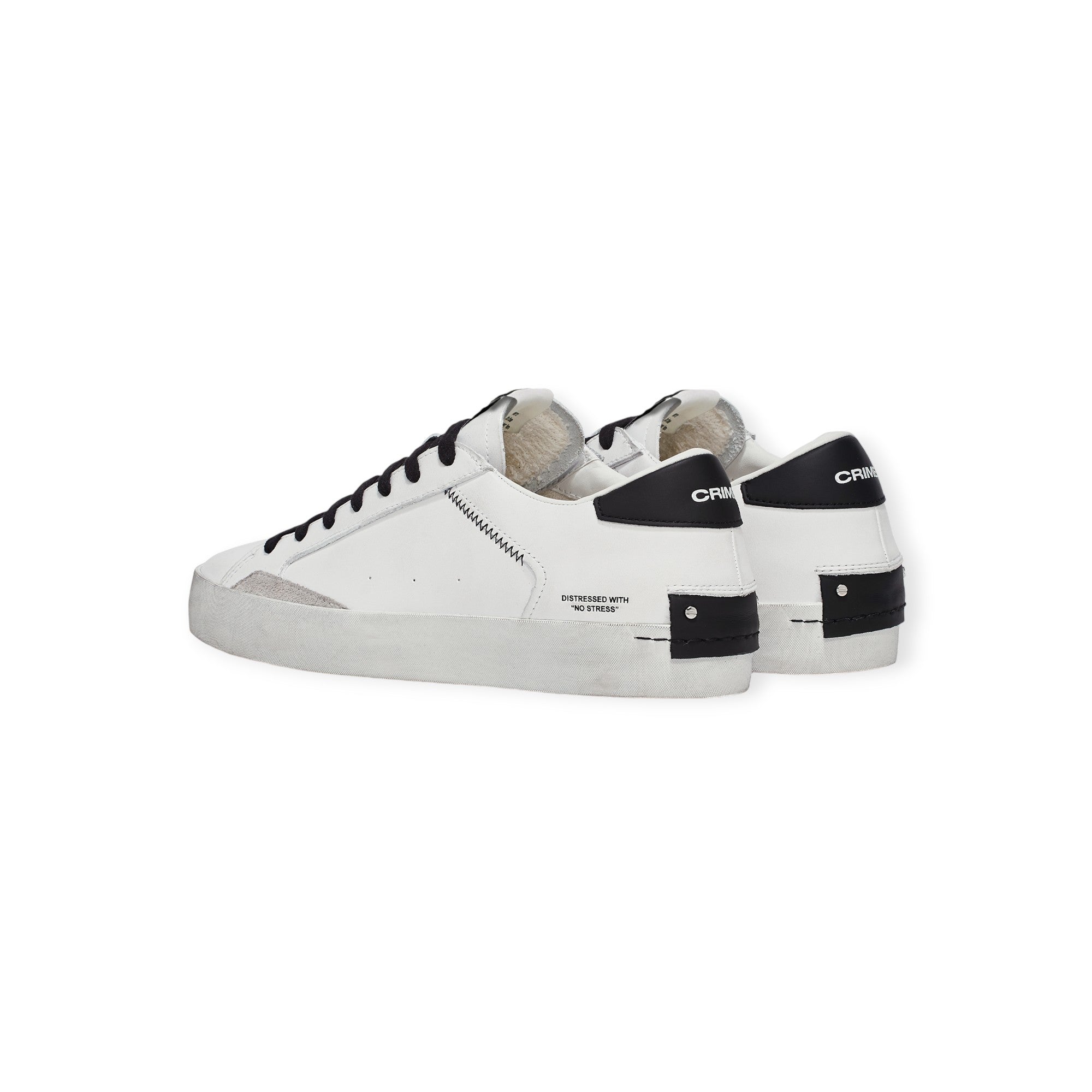 Sneakers DISTRESSED bianca di CRIME in pelle con profilo in camoscio ghiaccio, talloncino posteriore in pelle nera con logo lettering. Fondo in gomma.