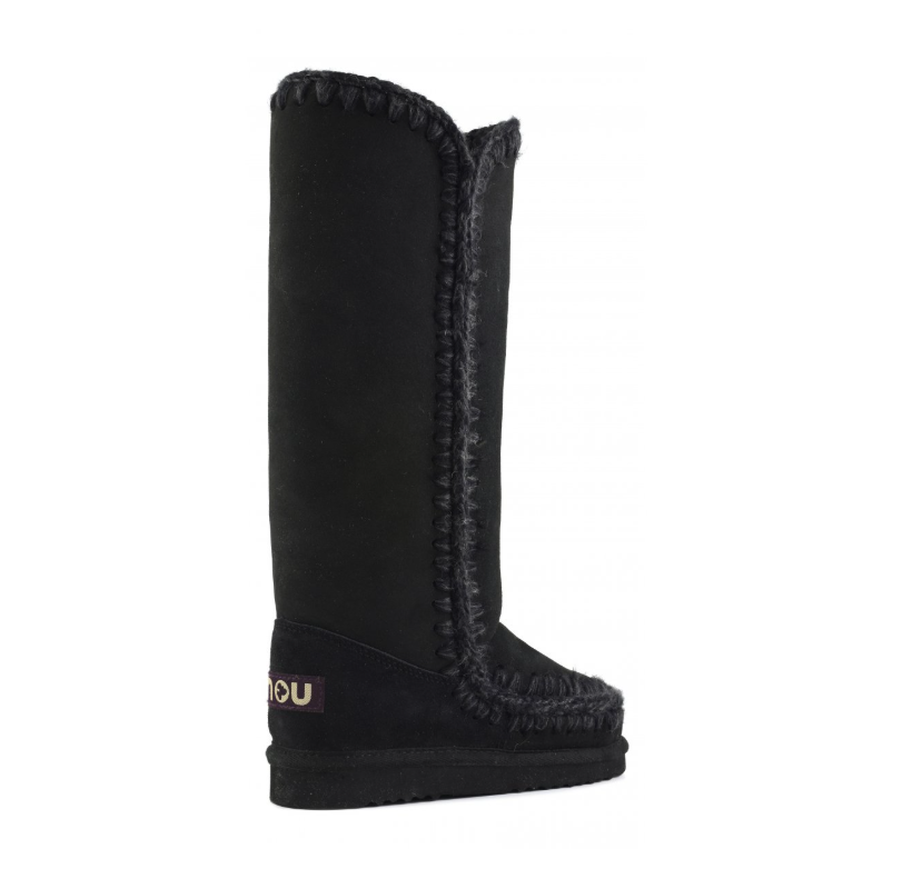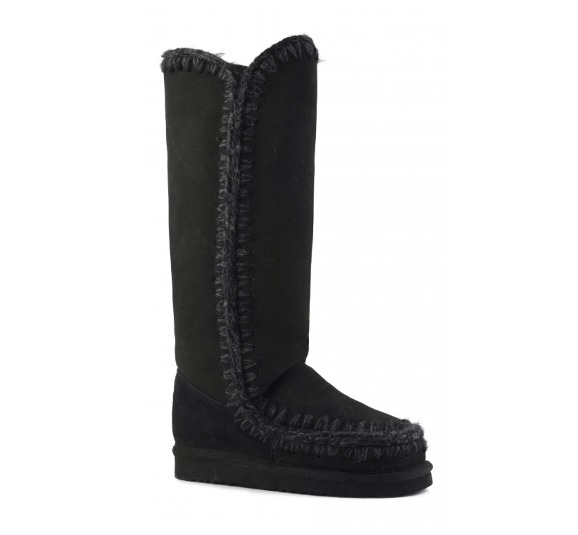 Stivale ESKIMO40 nero di MOU in camoscio con montone interno e cuciture in beige. Fondo in gomma.