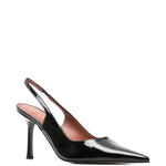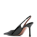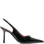 Slingback DARYA nera di CASTAGNA in vernice con scollo a v, tacco 90mm, fondo in cuoio.