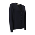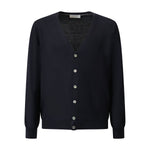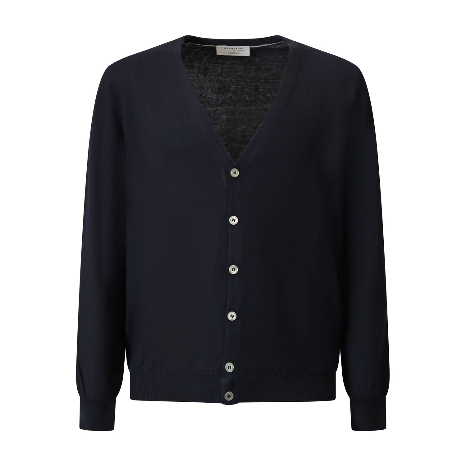 Cardigan blu di GRAN SASSO X FEDELE in lana merinos con chiusura con bottoni, bordi e polsi a costine.