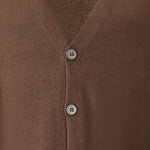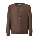 Cardigan marrone di GRAN SASSO X FEDELE in lana merinos con chiusura con bottoni, bordi e polsi a costine.
