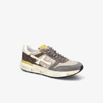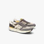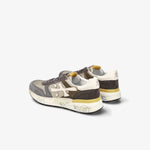 Running MICK grigia di PREMIATA in camoscio con riporti in nylon beige, logo in pelle bianca. Fondo in gomma.