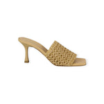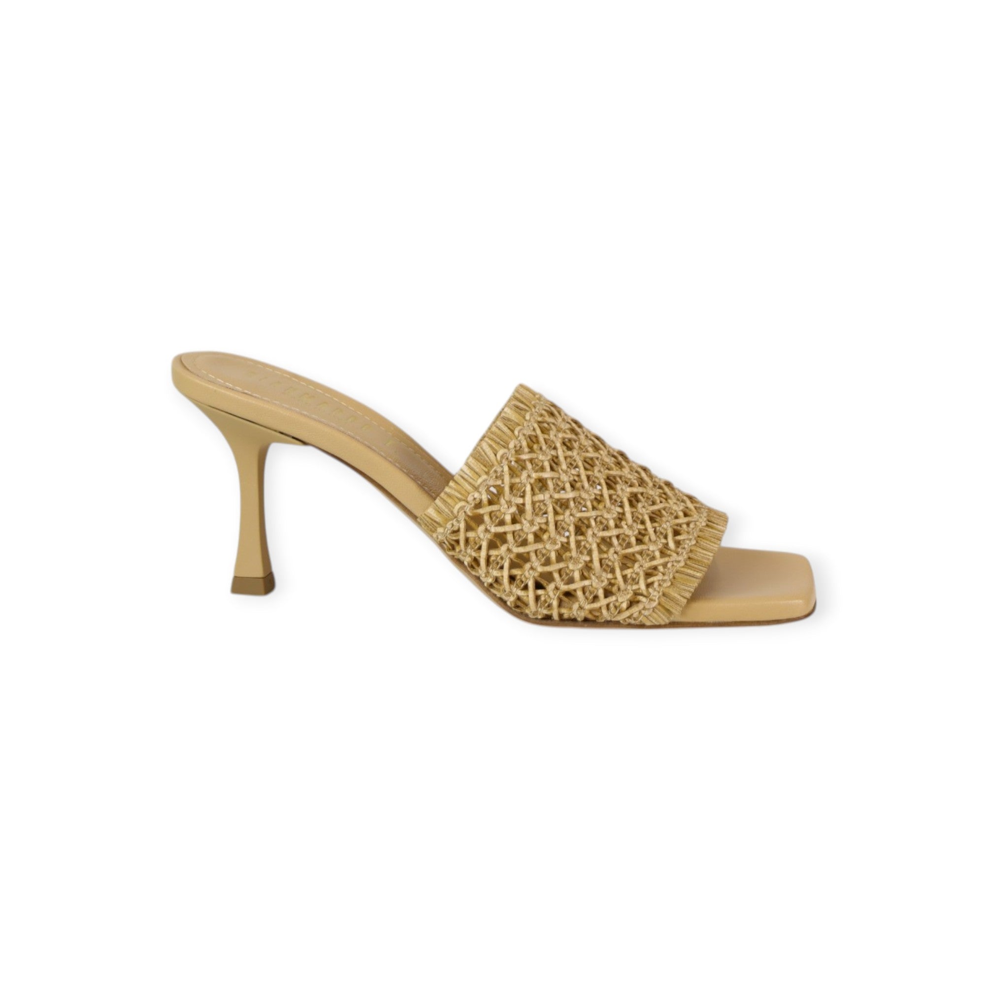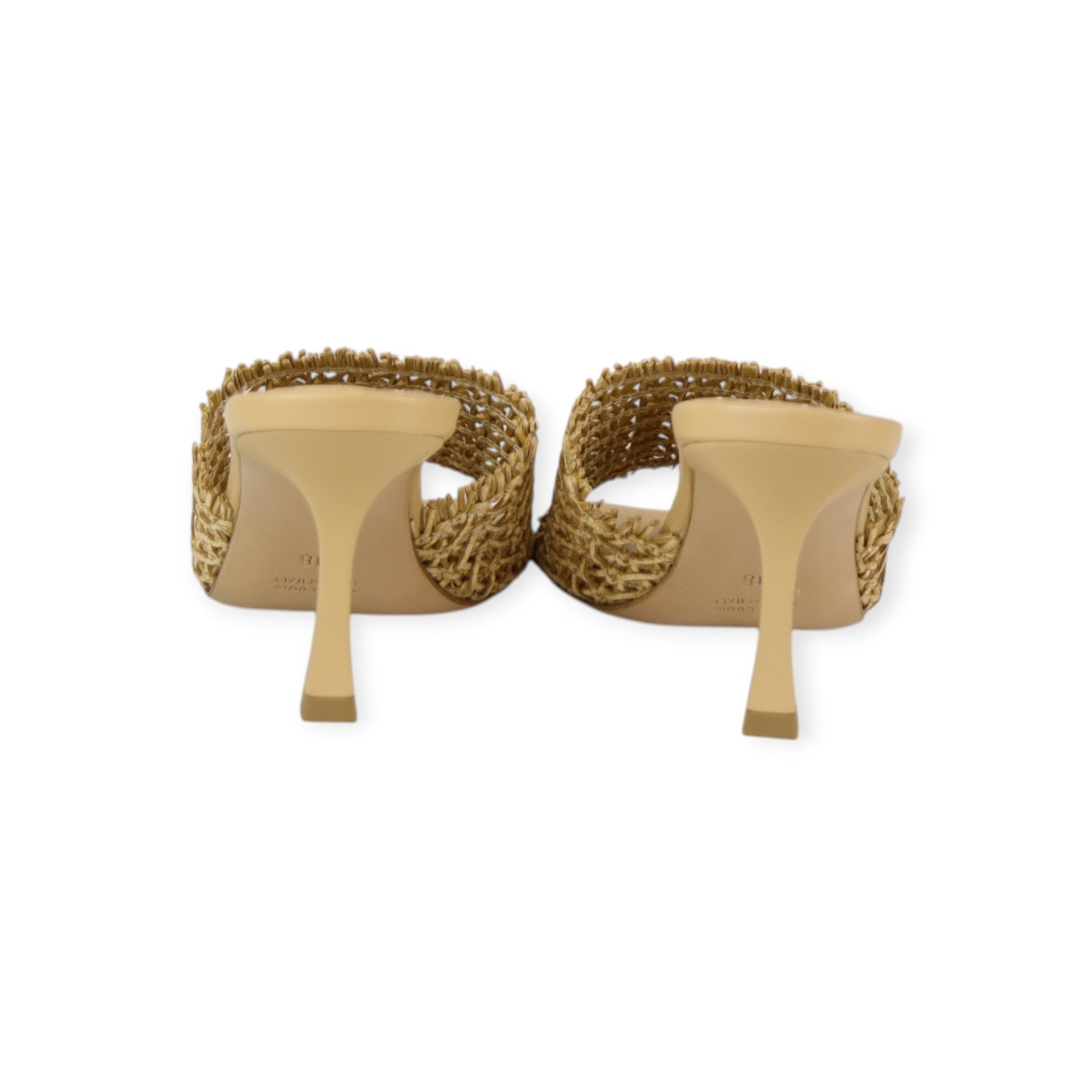 GIANMARCO F. leather sandals in raffia with a wide fringed-edge front strap, 90mm heel, leather sole.