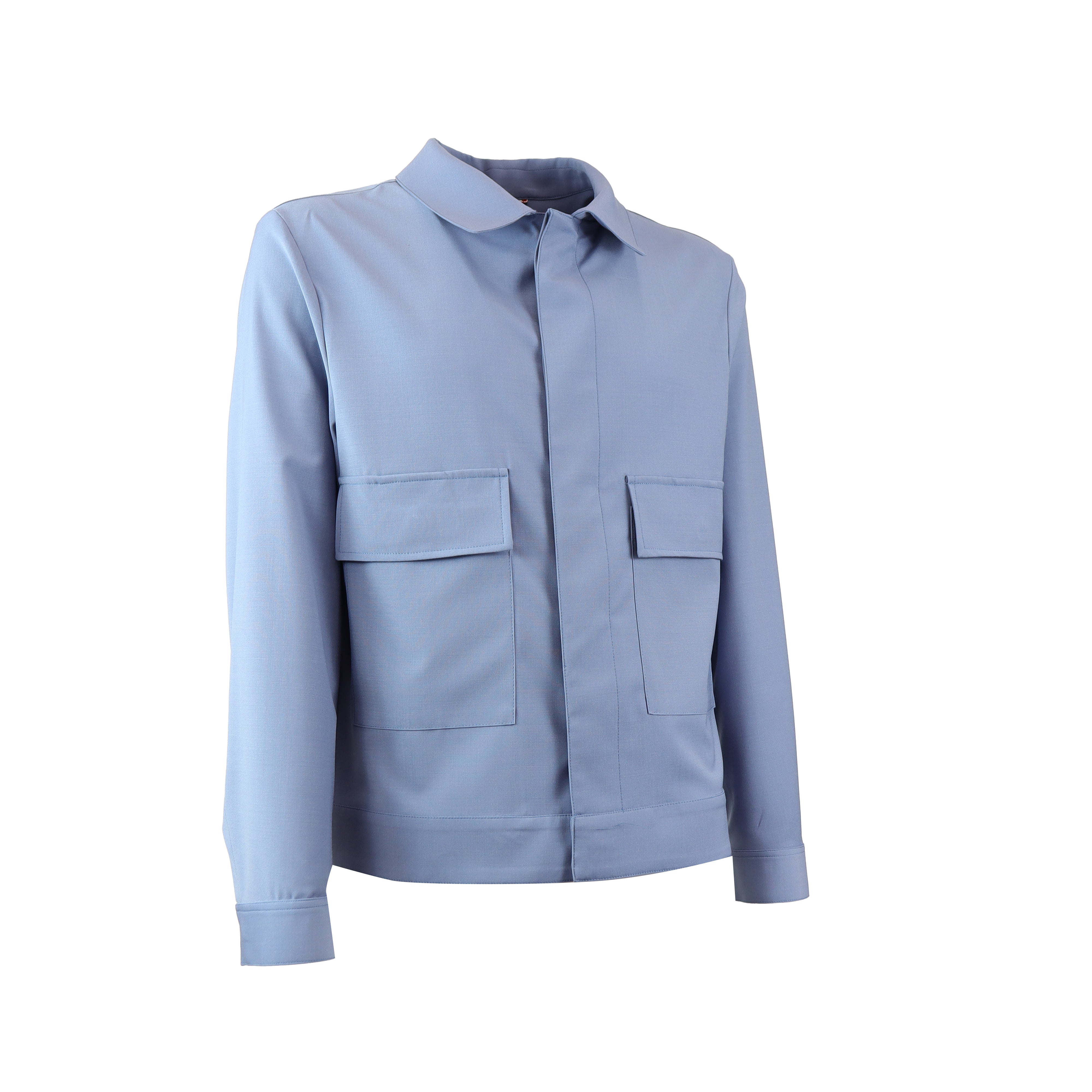 NEW YORK RESIDENT light blue COLUMBUS overshirt in wool blend with shirt collar, concealed button fastening, flap pockets.