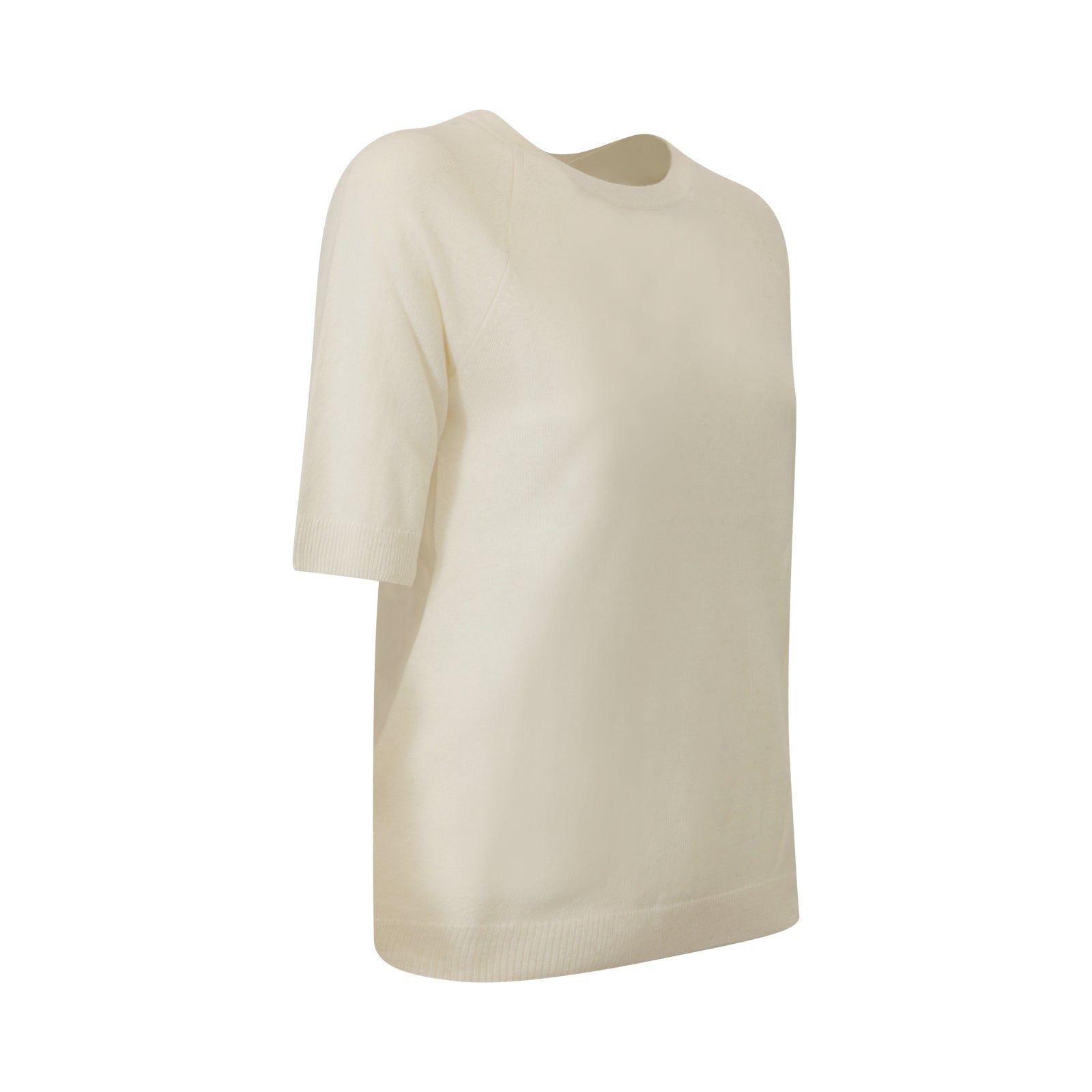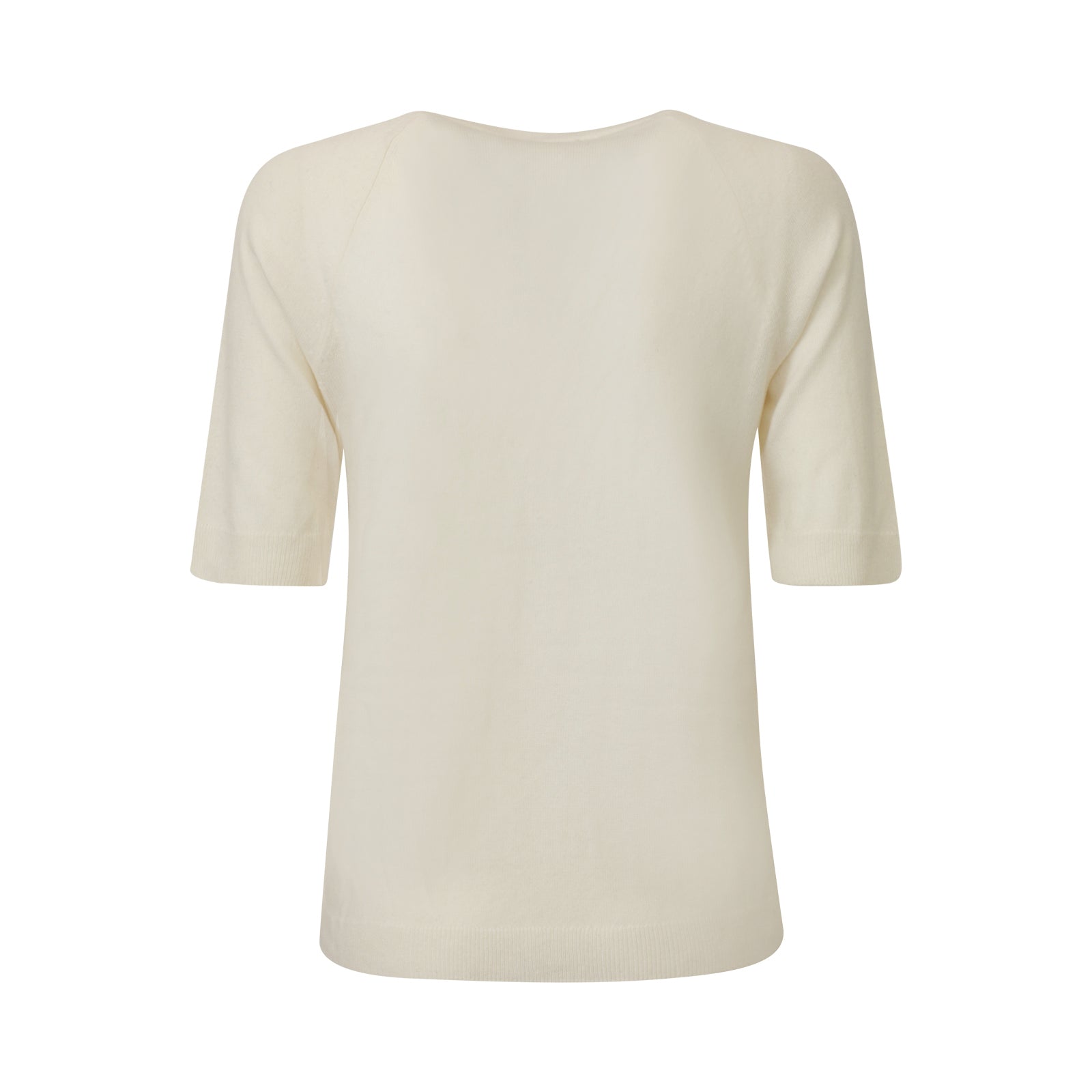 Maglia YEN off white di MM MAX MARA in misto cashmere con scollo tondo, mezza manica, bordi a costine.