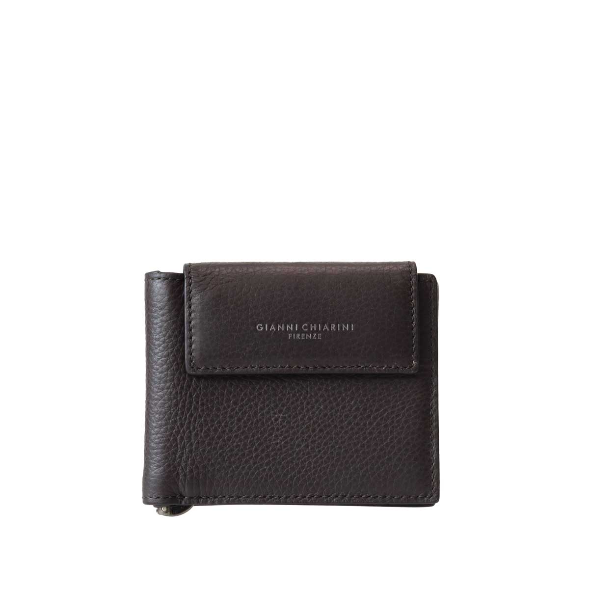 Portafogli marrone di GIANNI CHARINI in pelle con effetto martellato, con scomparto per banconote e carte, logo a fuoco. Misure 11x9x2 cm.