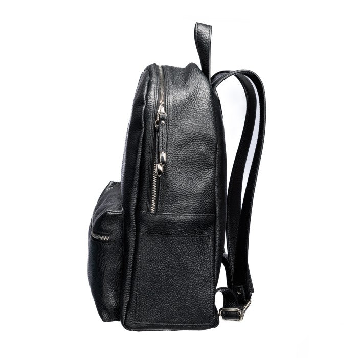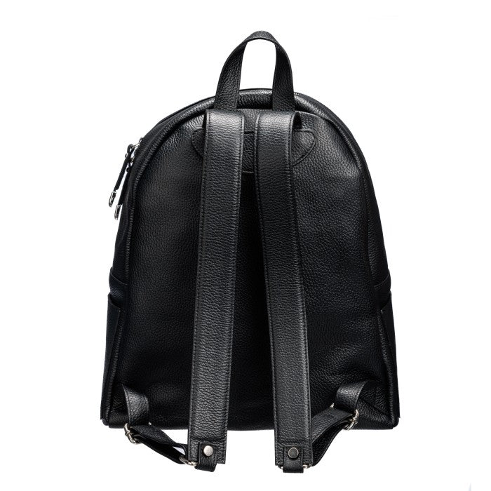 Zaino nero di ALBERTO LUTI in pelle con effetto bottalato, chiusura con zip, scompato anteriore con chiusura con zip. Misure 33x37x14 cm.