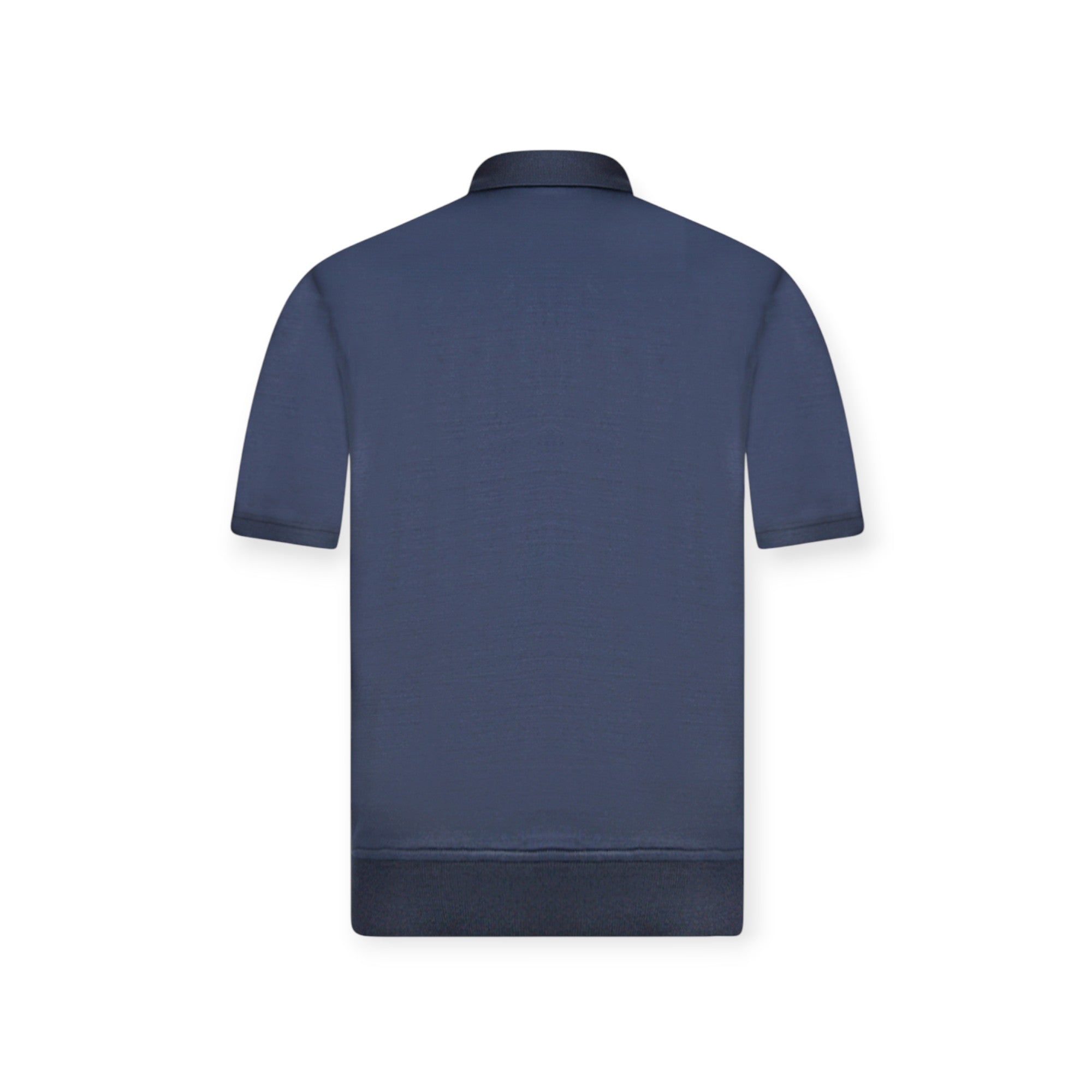 Skipper blu di GRAN SASSO X FEDELE in cotone filo di scozia con collo e fondo in maglia. Il materiale presenta una lucentezza, una morbidezza ed un effetto seta.