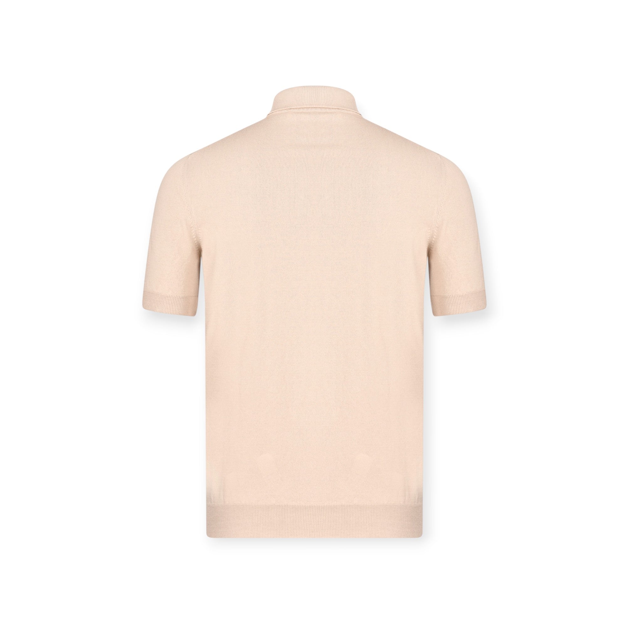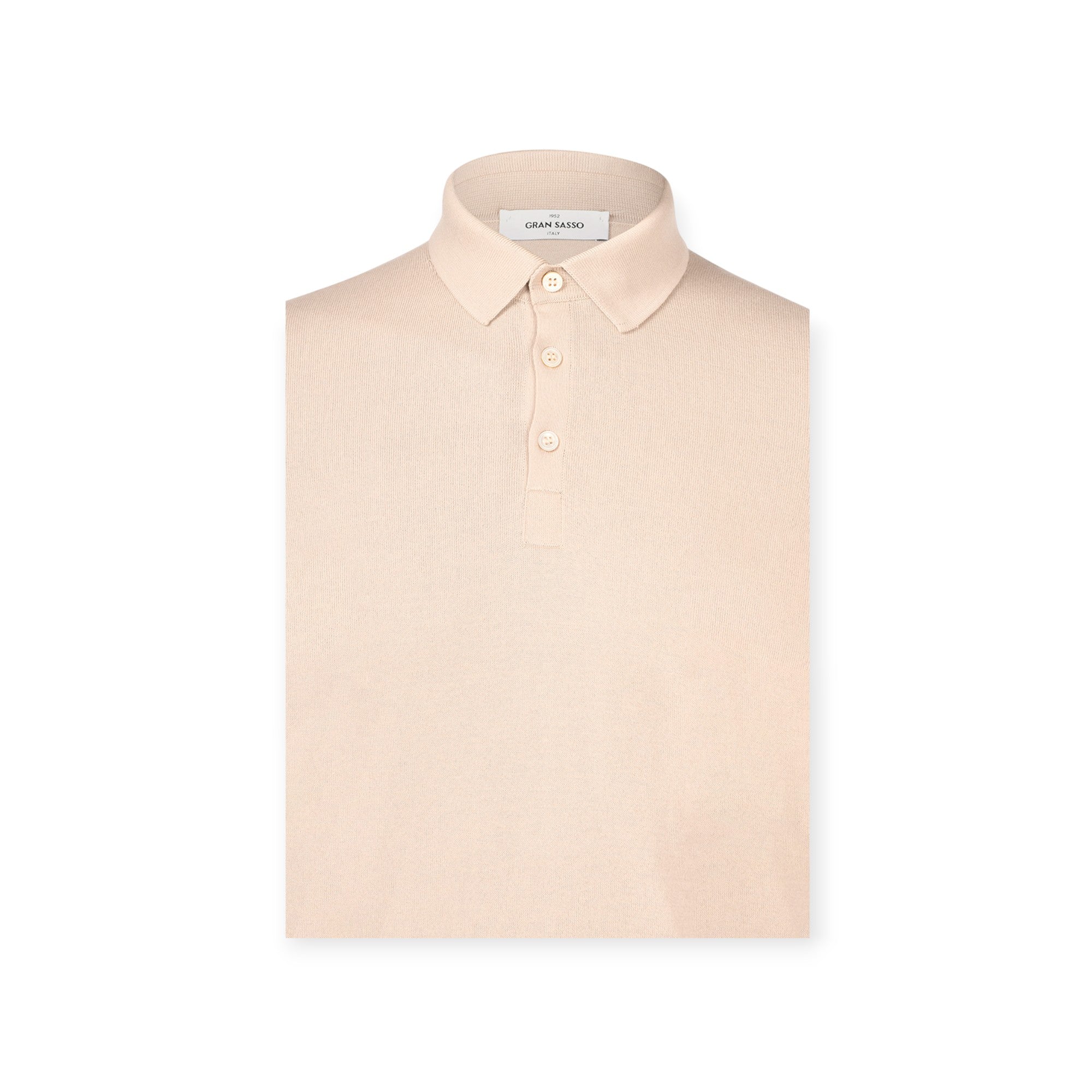 Tennis beige di GRAN SASSO X FEDELE in cotone con collo camicia, 3 bottoni e lavorazione a chicco di riso.