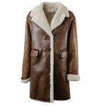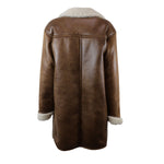 Cappotto ELDA tabacco di IBLUES in jersey spalmato con interno in montone eco, collo a rever, maniche lunghe, risvolit sul polso, tasche a patta. Fit regolare.