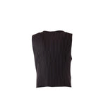 GILET marrone di IBLUES in tessuto a maglia con scollo a V profondo, senza maniche e 3 bottoni. Fit regolare e linea sfiancata.