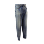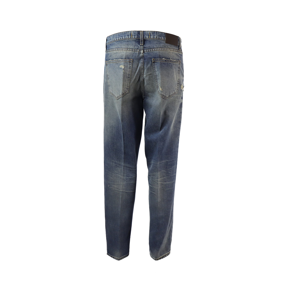 Jeans NIKKO sabbiato di BONHEUR MILANO in cotone con abrasioni e sabbiatura, modello 5 tasche, fondo 17cm. Carrot fit.