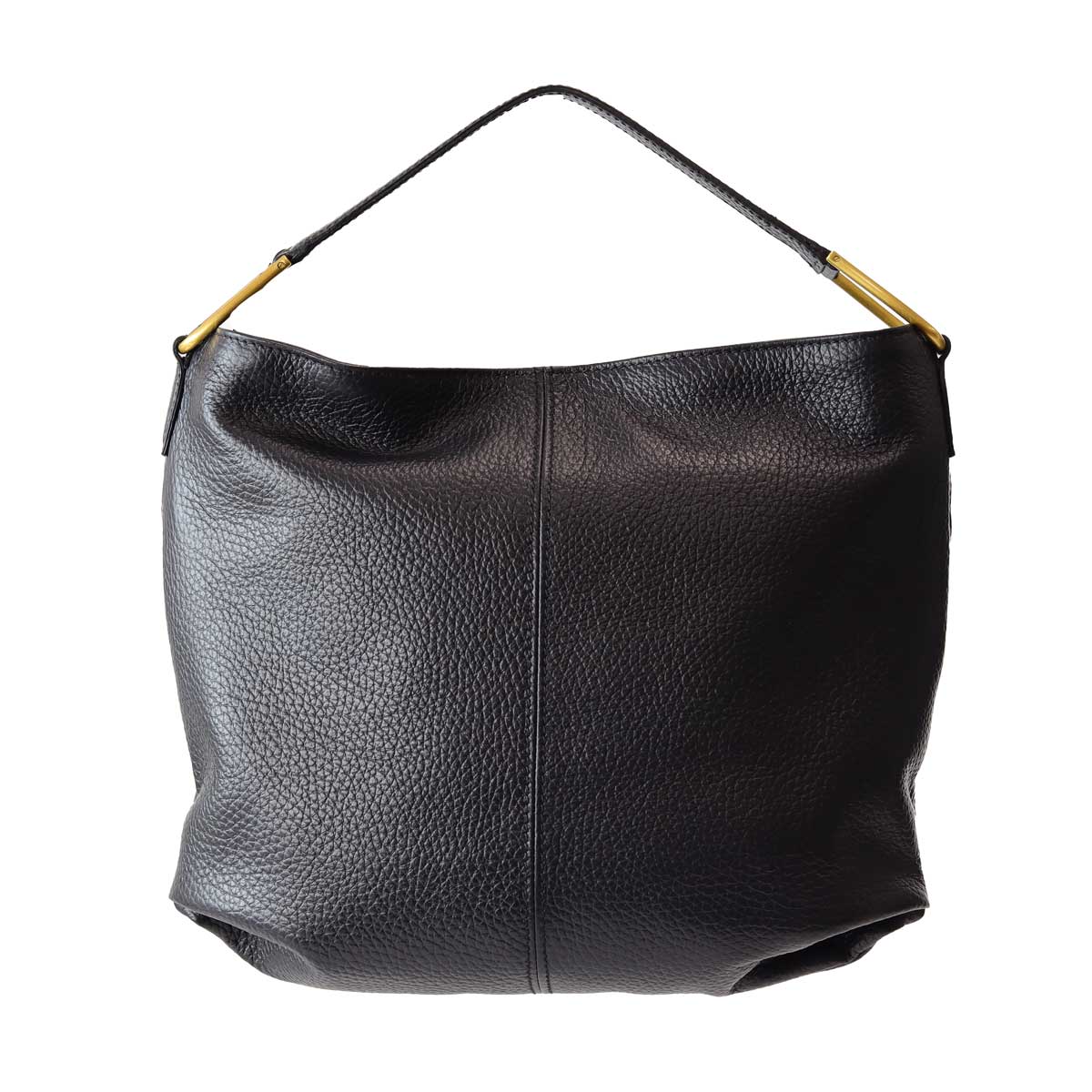 Borsa a mano NATASHA nera di GIANNI CHIARINI in pelle con effetto bottalato, chiusura con zip, tracolla interna, ganci in metallo oro Misure 40x30x12 cm.