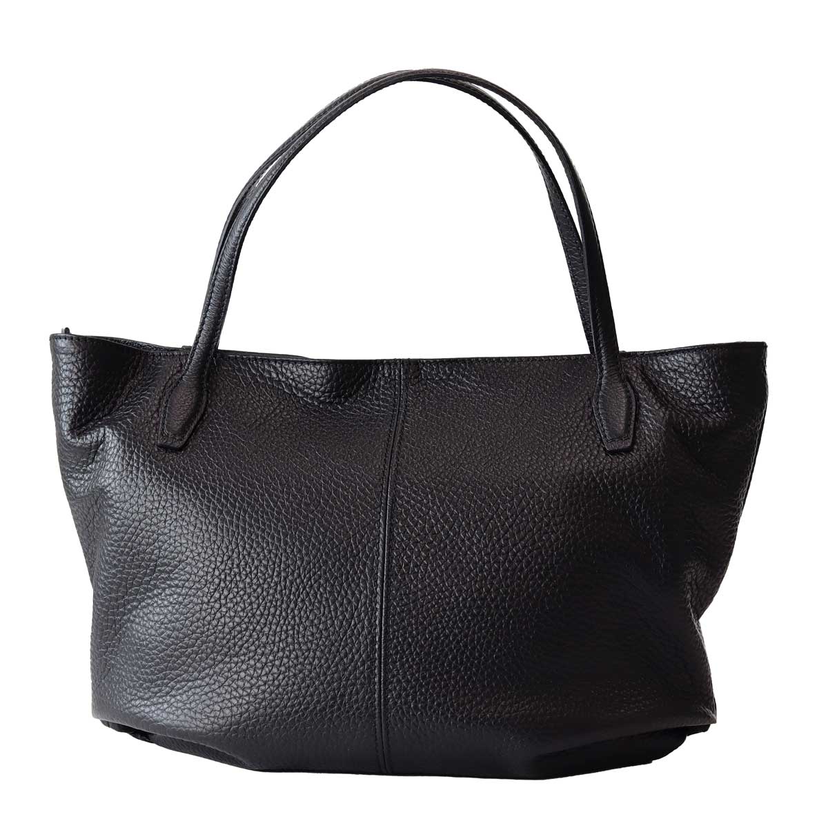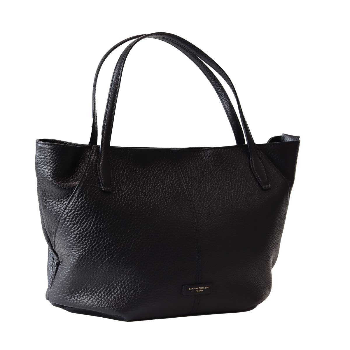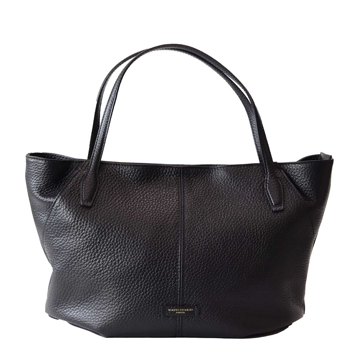 Borsa a mano NATASHA nera di GIANNI CHIARINI in pelle con effetto bottalato, chiusura con zip, doppio manico, tracolla interna. Misure 48x30x15 cm.