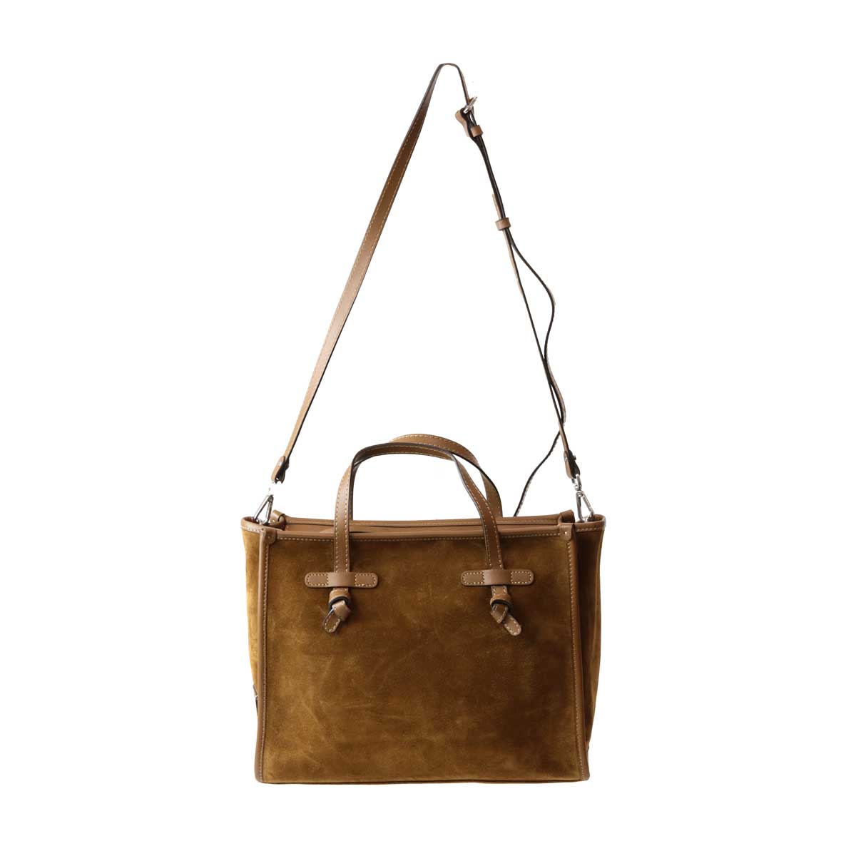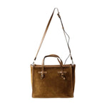 Shopping cuoio di MARCELLA CLUB GIANNI CHIARINI in camoscio con profili in pelle cuoio, doppio manico e tracolla interna in pelle cuoio. Misure 33x26x12 cm.