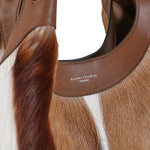 Shopping naturale di GIANNI CHIARINI in cavallino con manico e profili in pelle, sfumature in marrone e bianco. Misure 31x18x16 cm.