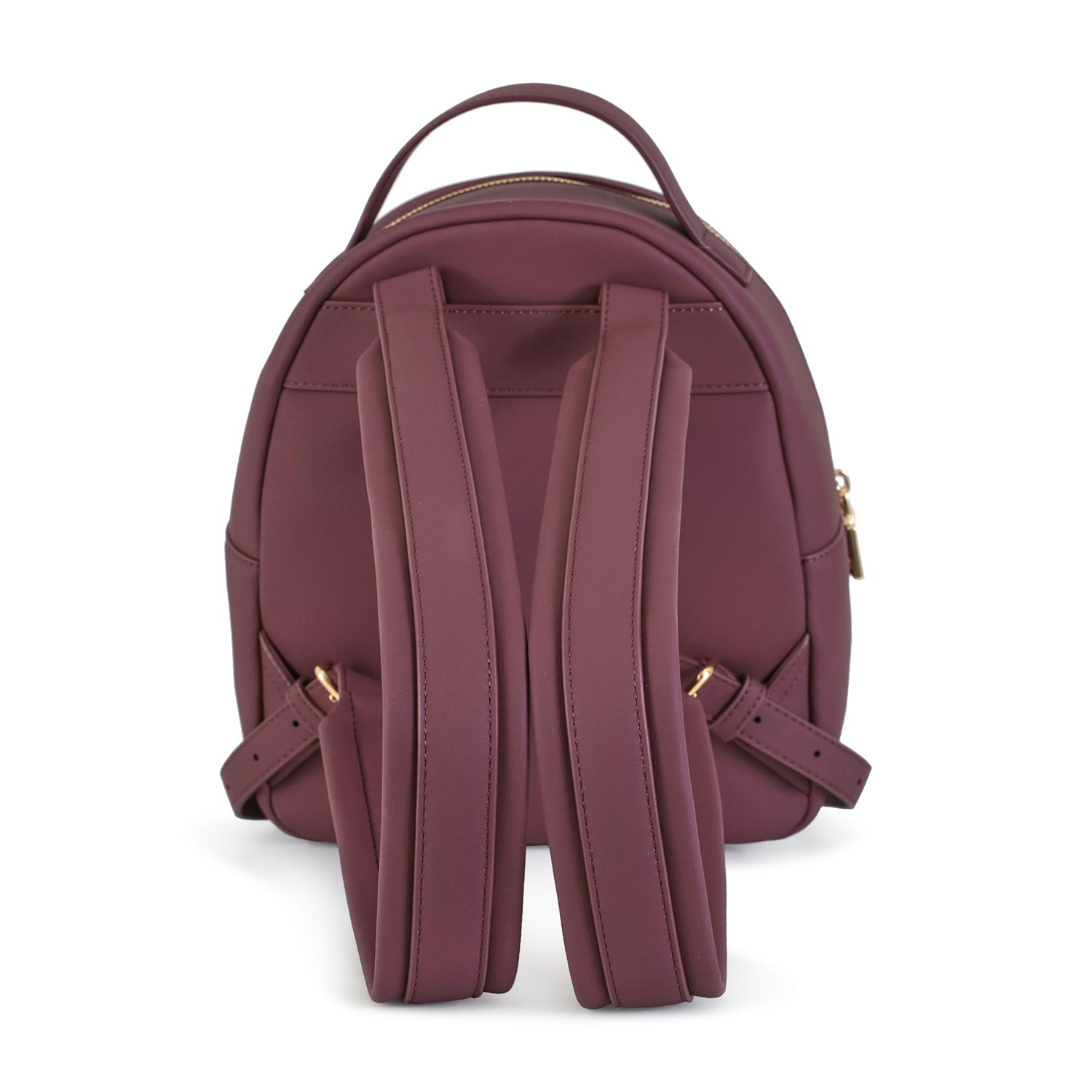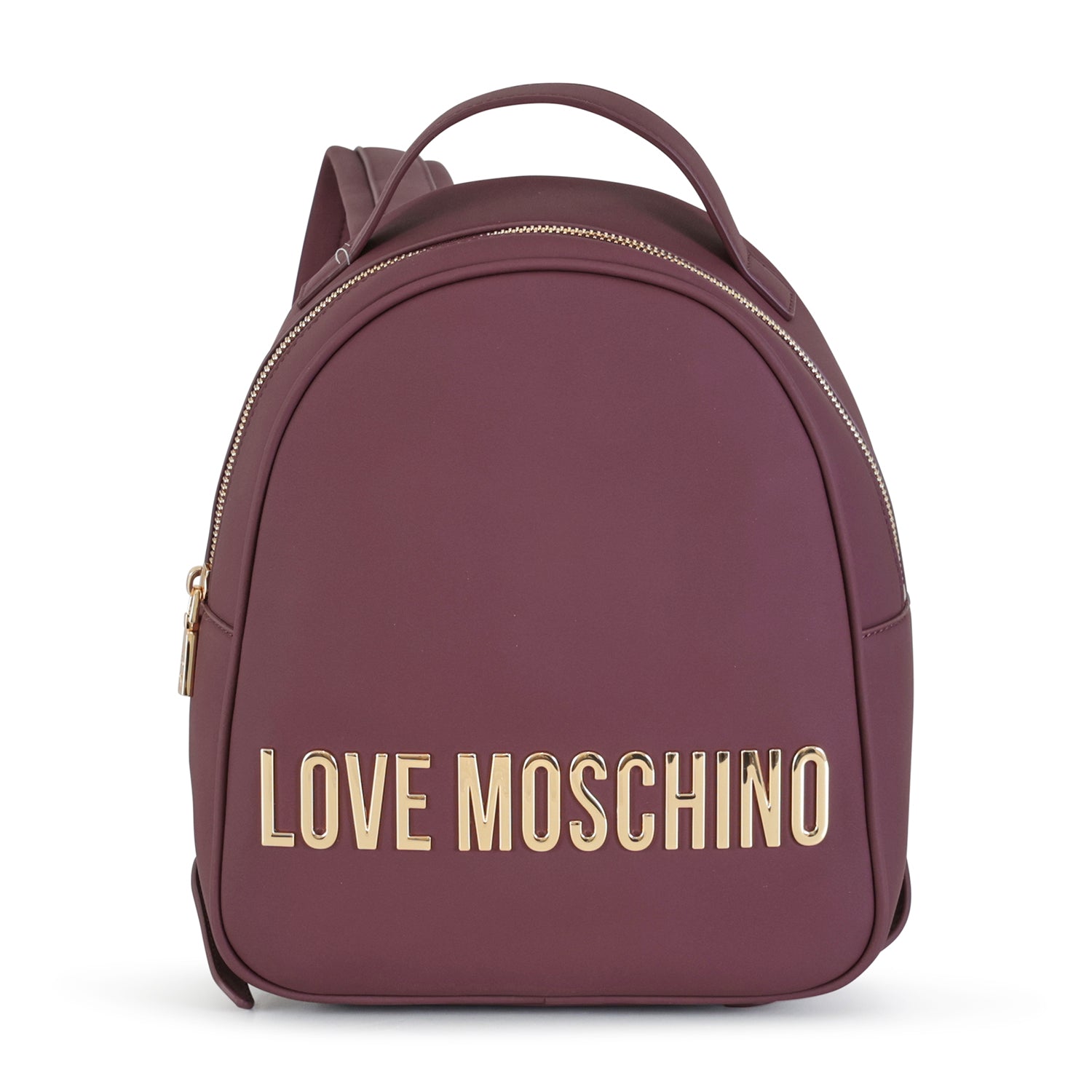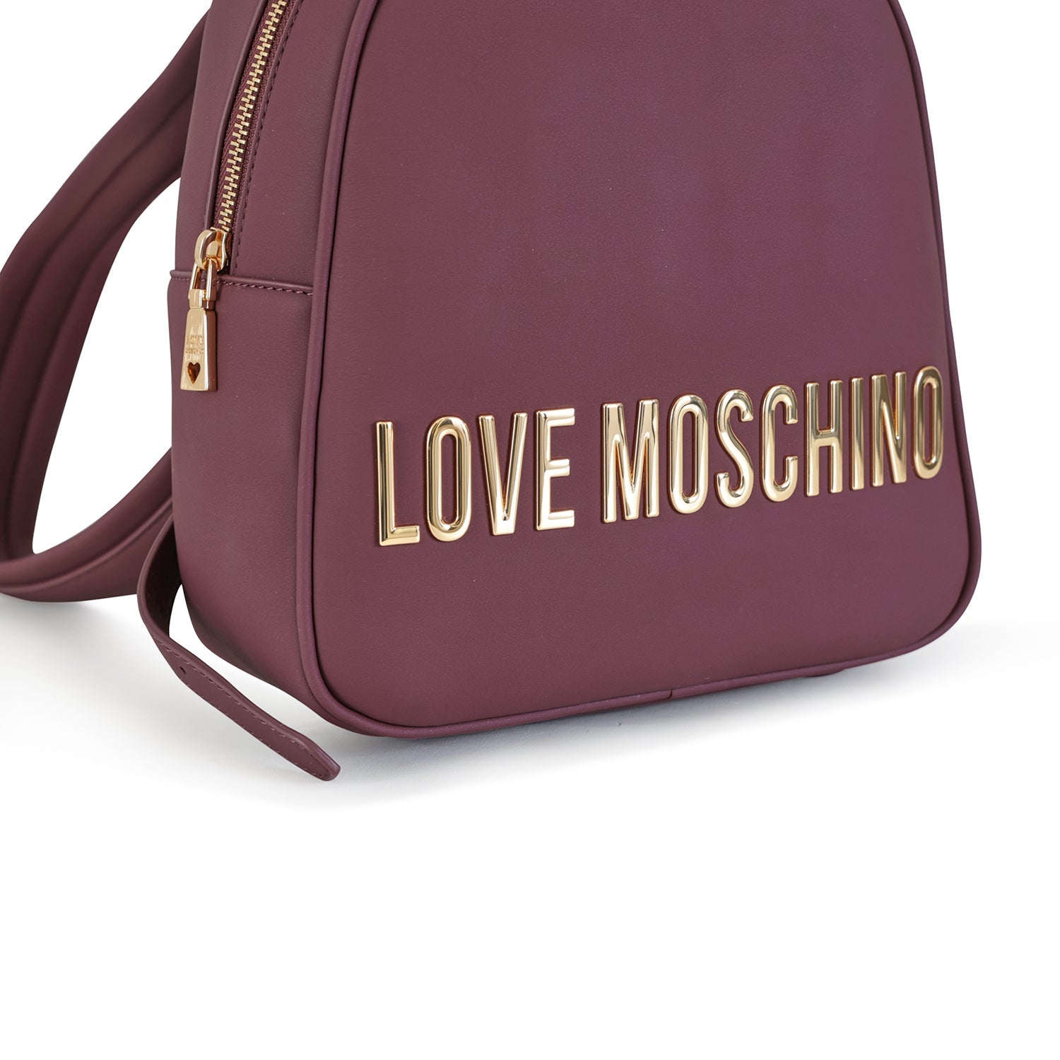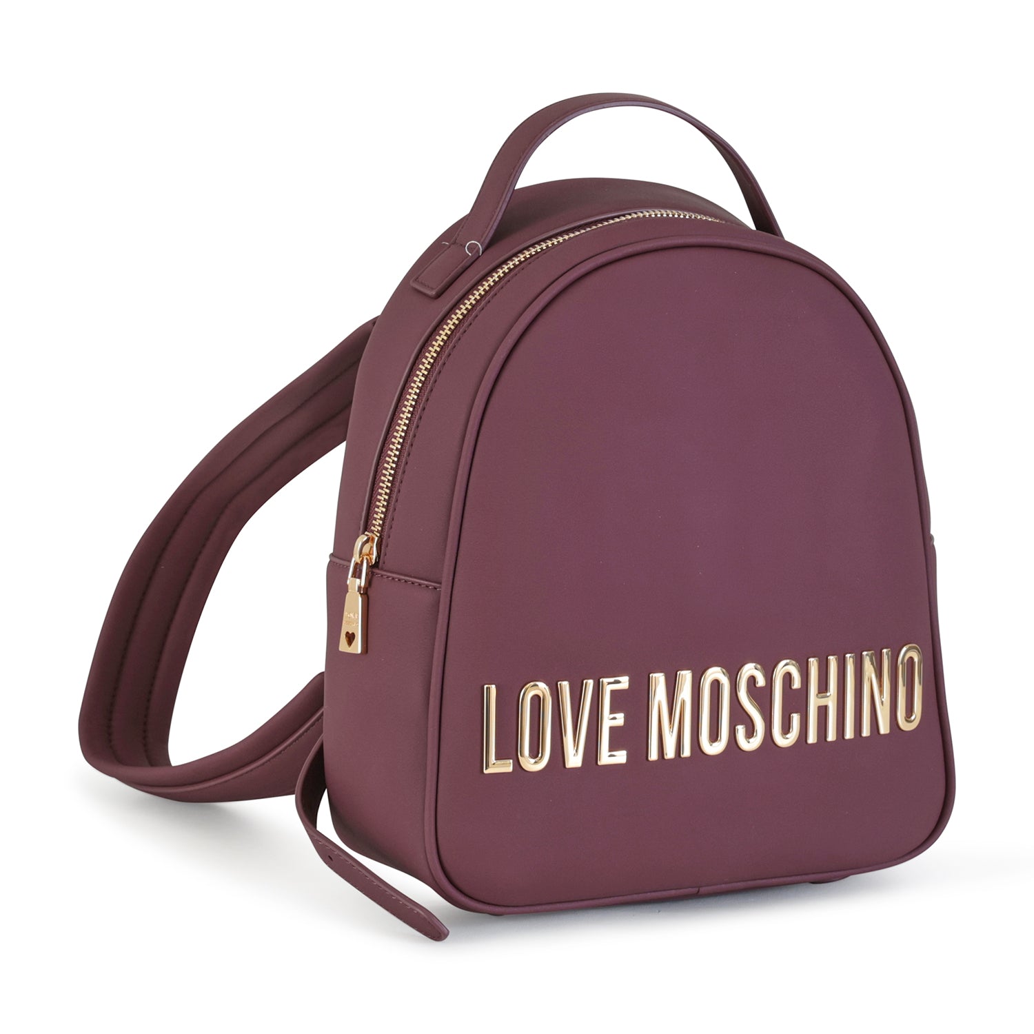 Zaino bordeaux di LOVE MOSCHINO in ecopelle con chiusura con zip around e logo lettering in metallo oro. Misure 24x27x11 cm.