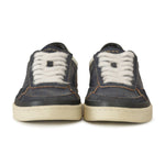 Sneakers PADS blu di GHOUD in pelle con effetto vintage, punta microforata, collarino in pelle bianca, profilo del fondo in nero e fondo in gomma.