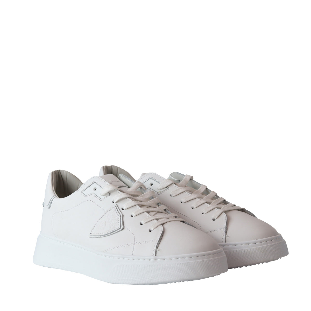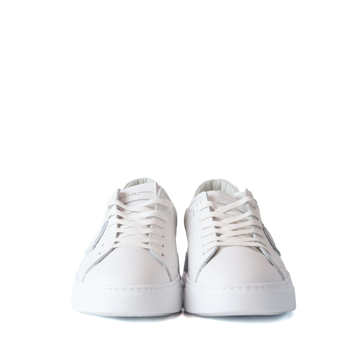 Sneakers TEMPLE bianca di PHILIPPE MODEL in pelle con logo in pelle bianca e fondo in gomma bianca.