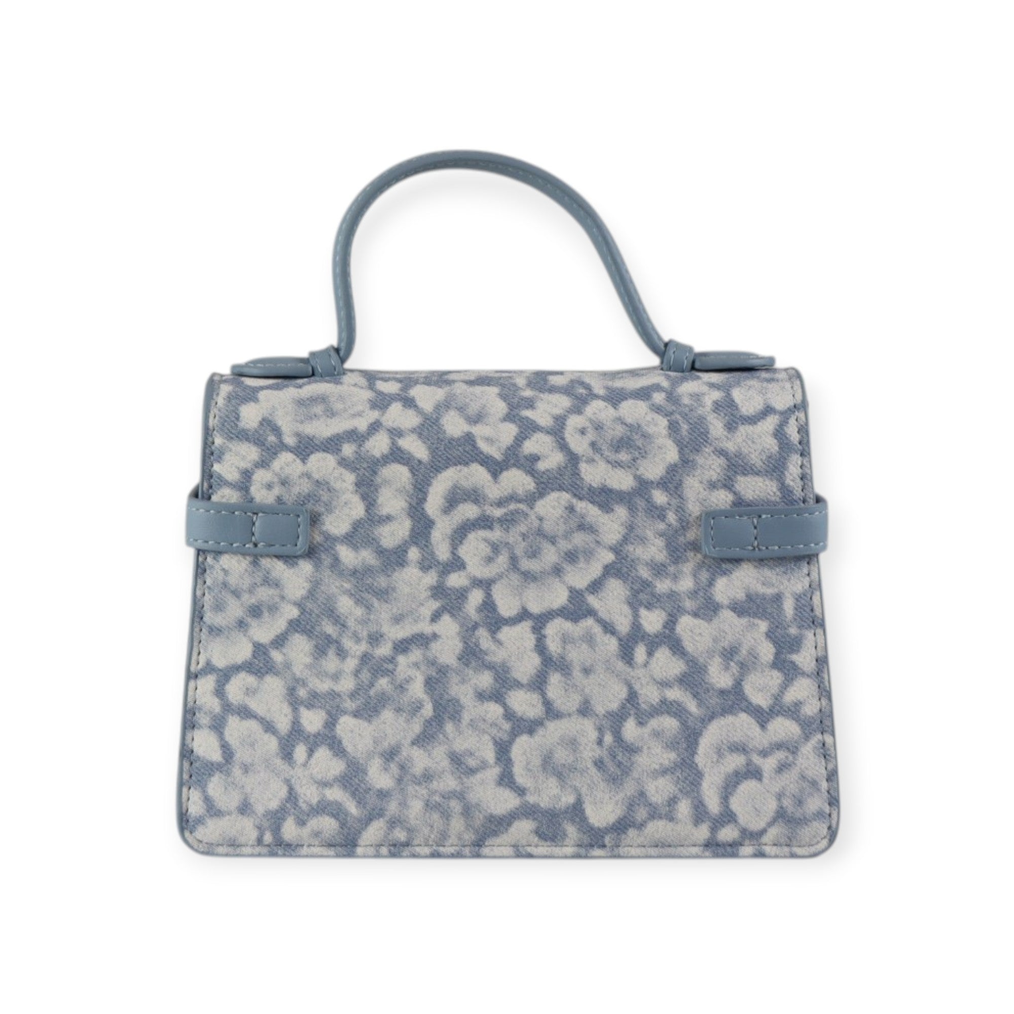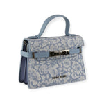 Borsa a mano AROUND azzurra di MARC ELLIS in tessuto con stampa floreale, manico e riporti in pelle in tinta, logo in metallo. Misure 21x14x9 cm