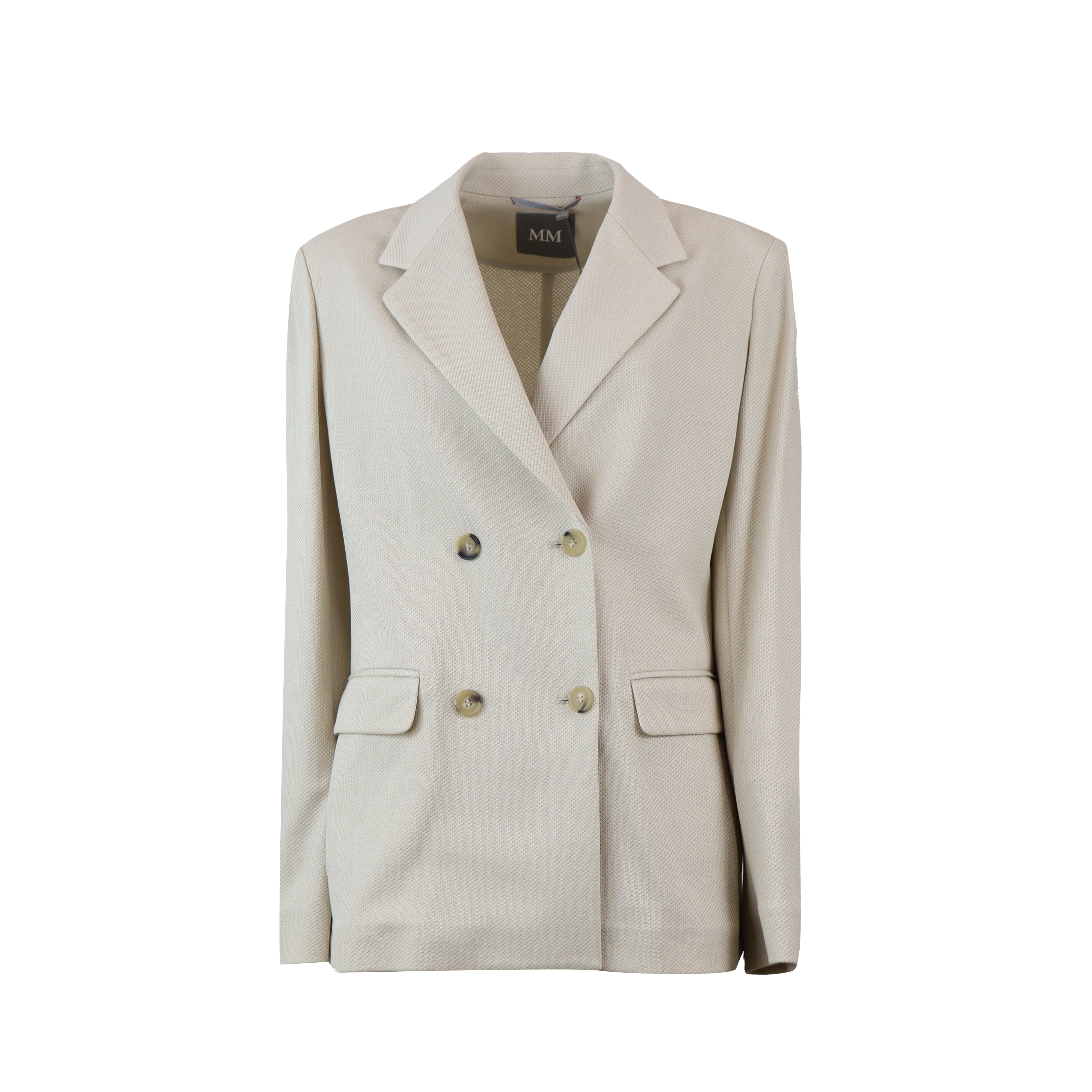 Giacca ROTONDO beige di MM MAX MARA in cotone con rever e collo classico, modello doppio petto, tasche con patta.