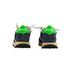 Running START HERITAGE blu di VALSPORT in camoscio con tomaia in tessuto in tinta, boomerang in pelle beige, talloncino posteriore in verde. Fondo in gomma.