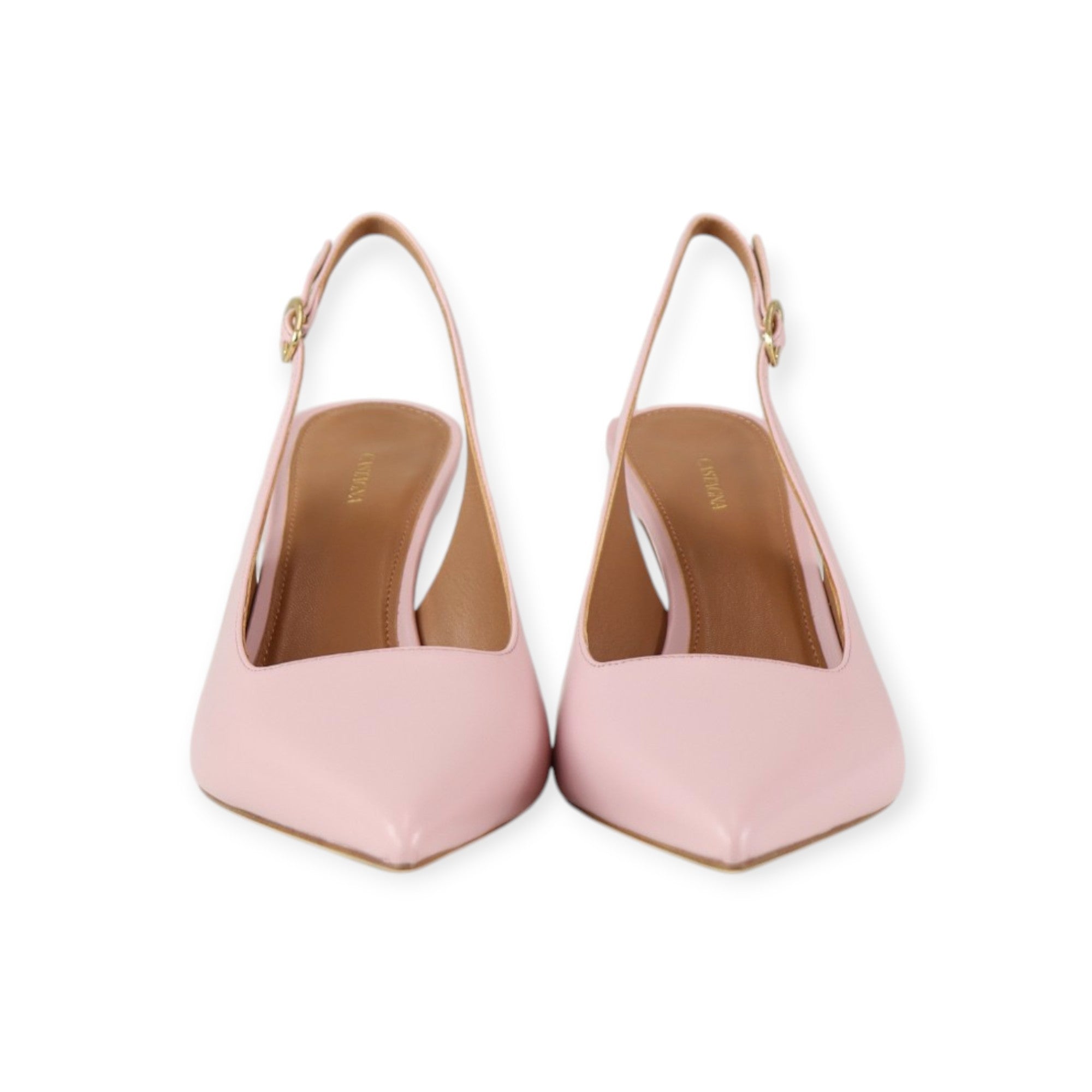 Slingback MARIA rosa di CASTAGNA in pelle nappa con scollo leggermente quadrato, forma a punta, tacco 80mm a rocchetta.