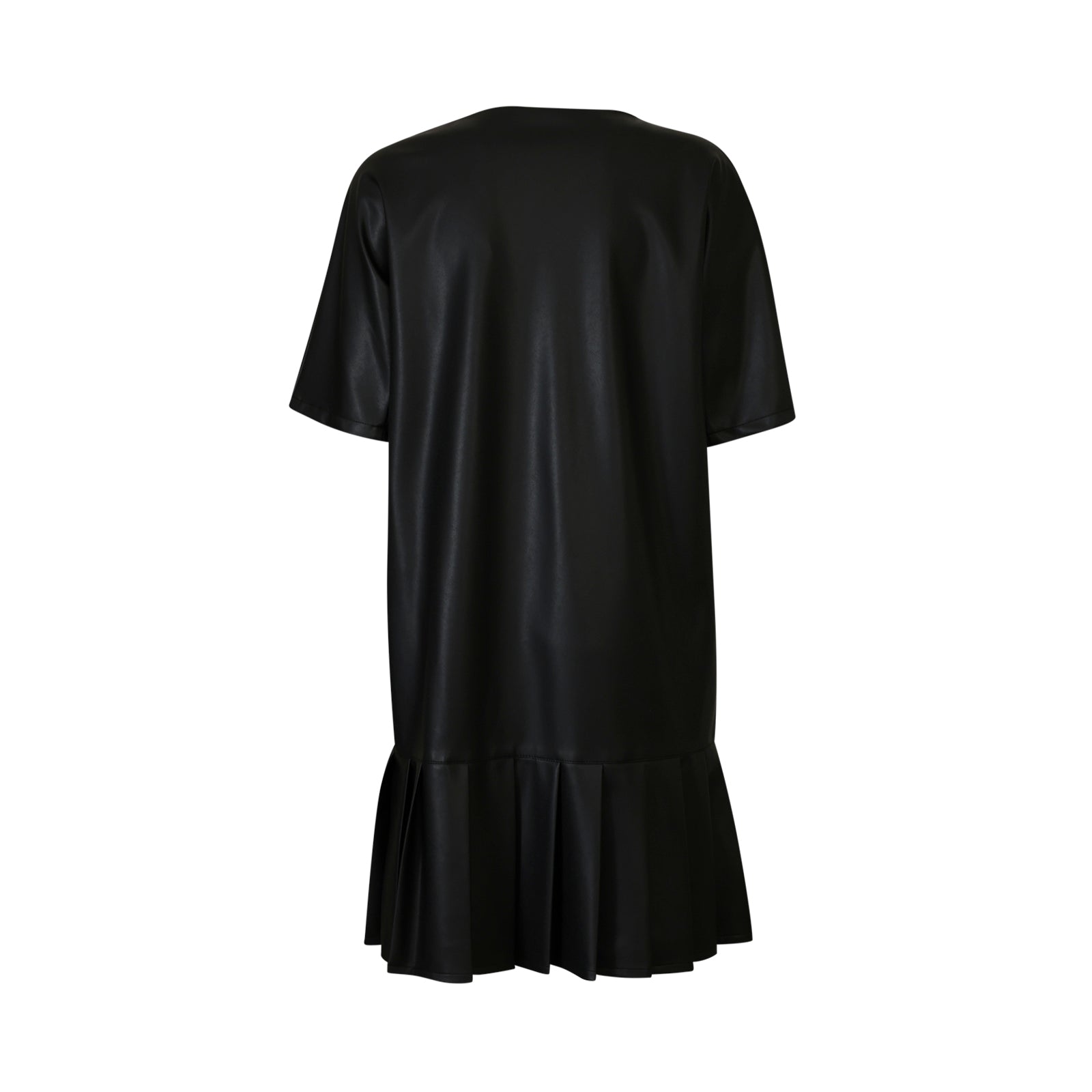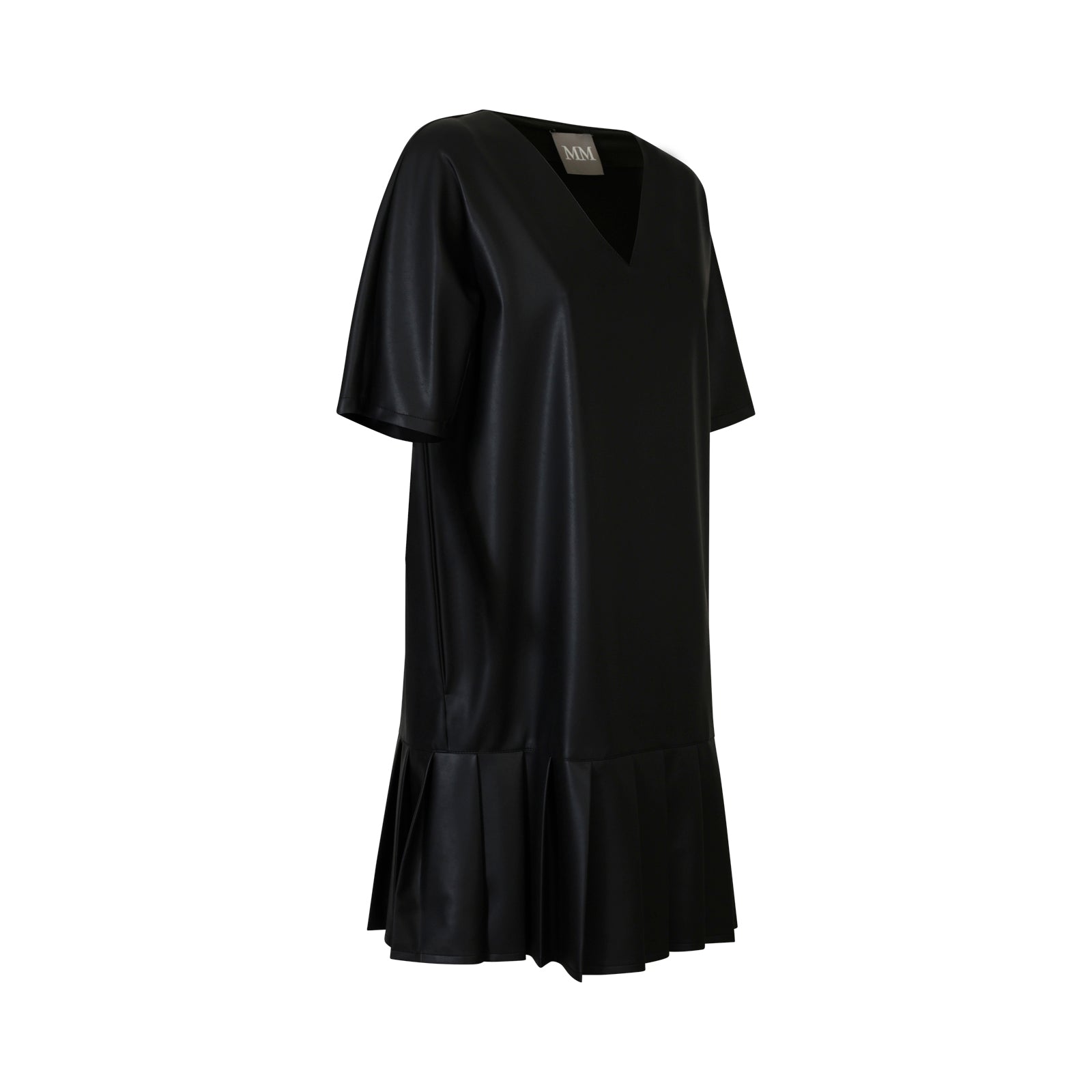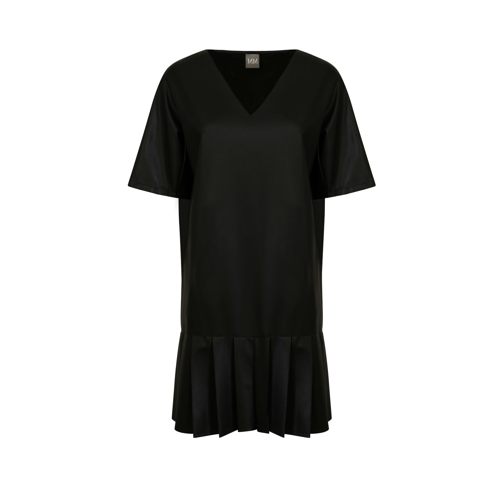 Abito HIDESIA nero di M.M. MAX MARA in tessuto raso con mezza manica, scollo a v, linea dritta, fondo con plisse.
