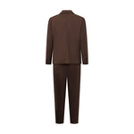 Abito marrone di OUTFIT in punto milano con giacca a due bottoni con rever classico, tasche a toppe e due spacchi laterali, pantalone tasca america.