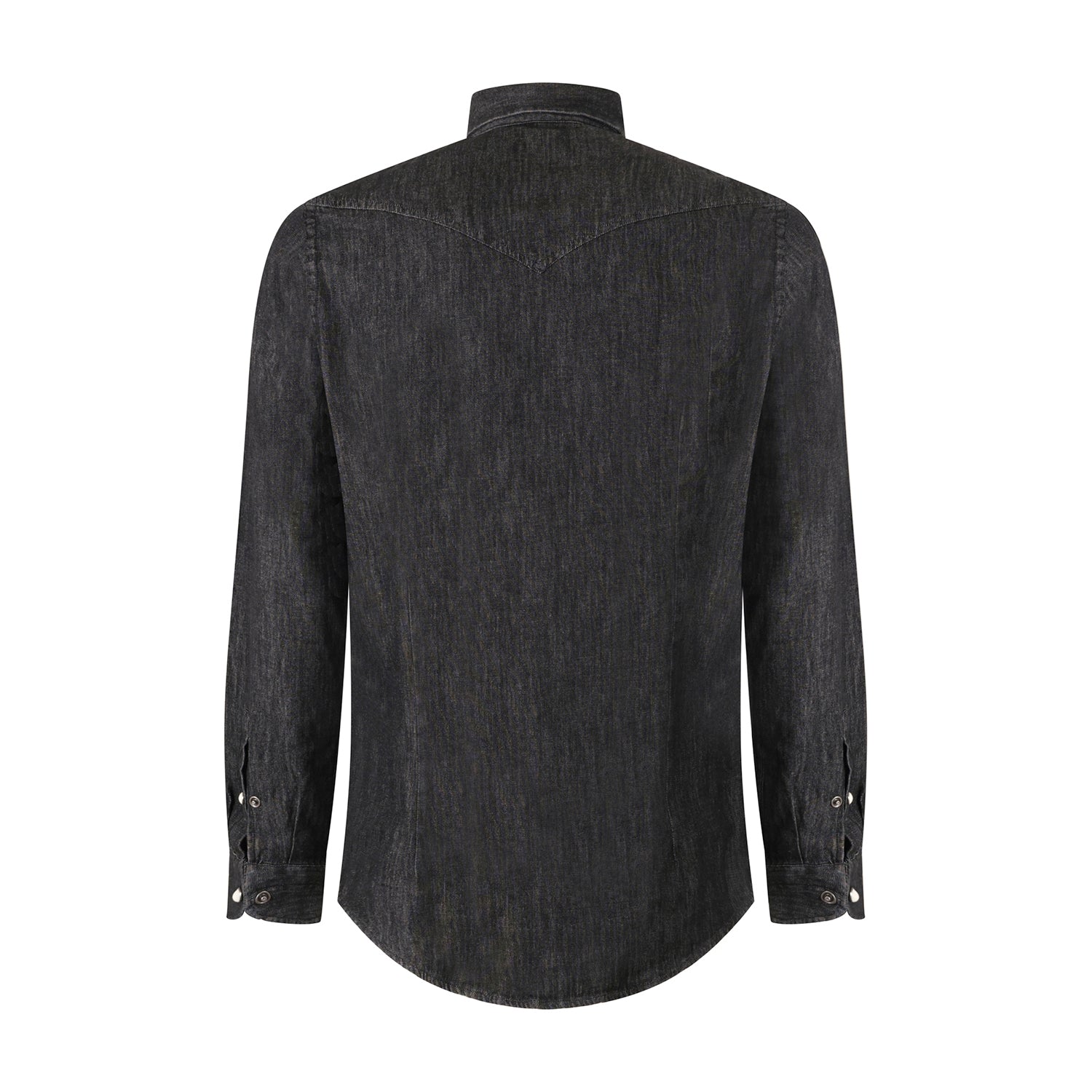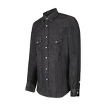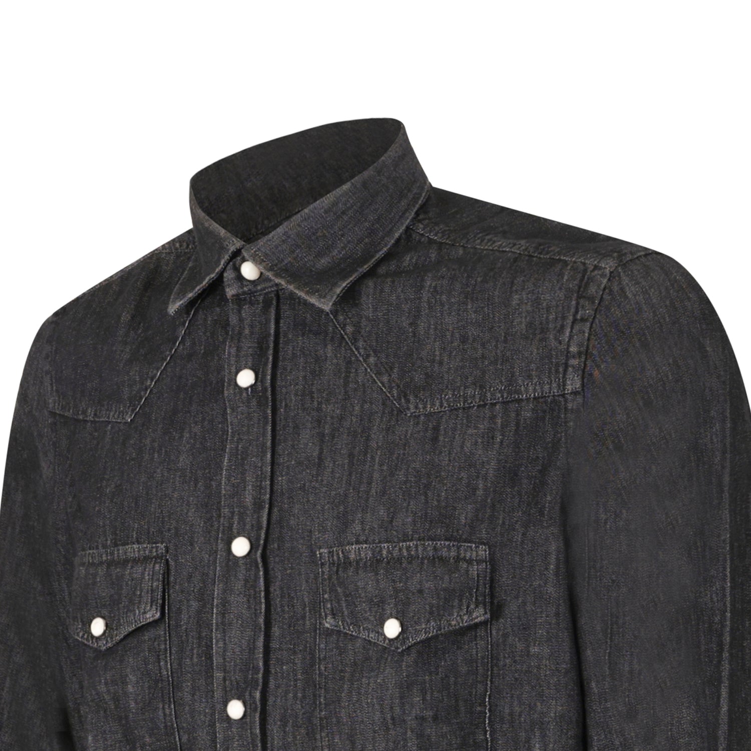 Camicia denim nero di M100 in cotone con collo francese, bottoni in perla, taschini con pattina e bottoni, manica lunga, regular fit.