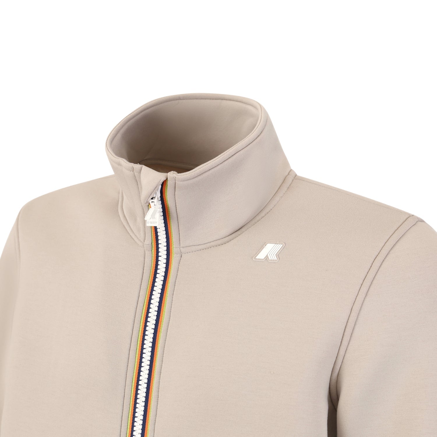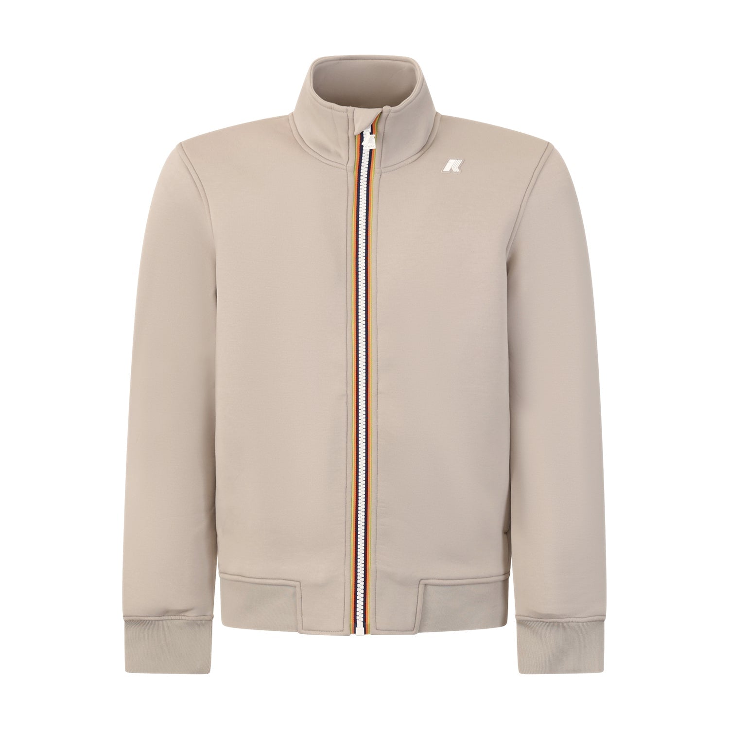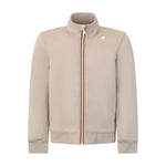 Felpa FINN SPACER beige di K-WAY in tessuto tecnico con zip con bordi iconici, polsi e fondo a costine, logo bianco.