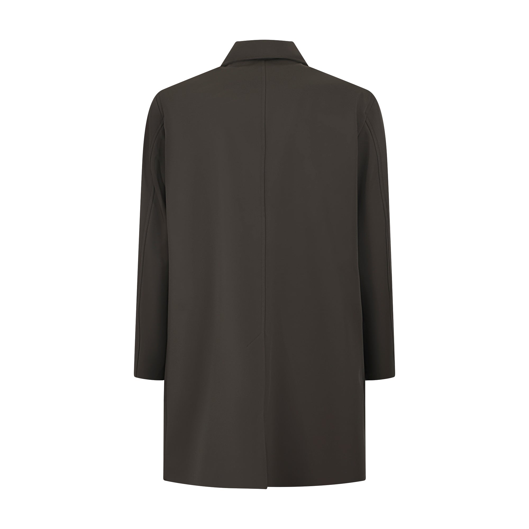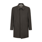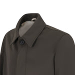 Trench verde di OUTFIT in nylon con collo camicia, chiusura con bottoni e zip, tasche diagonali a filetto, spacco posteriore.