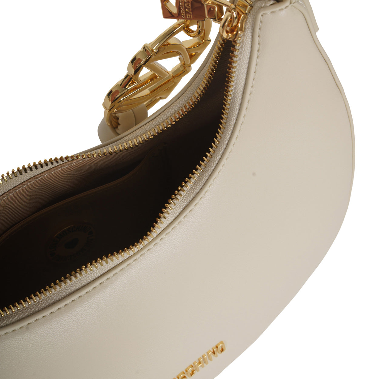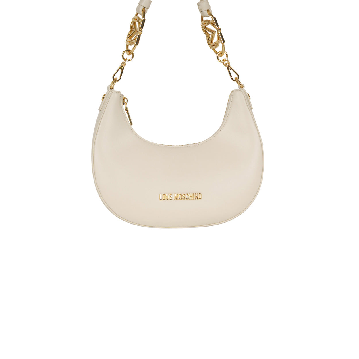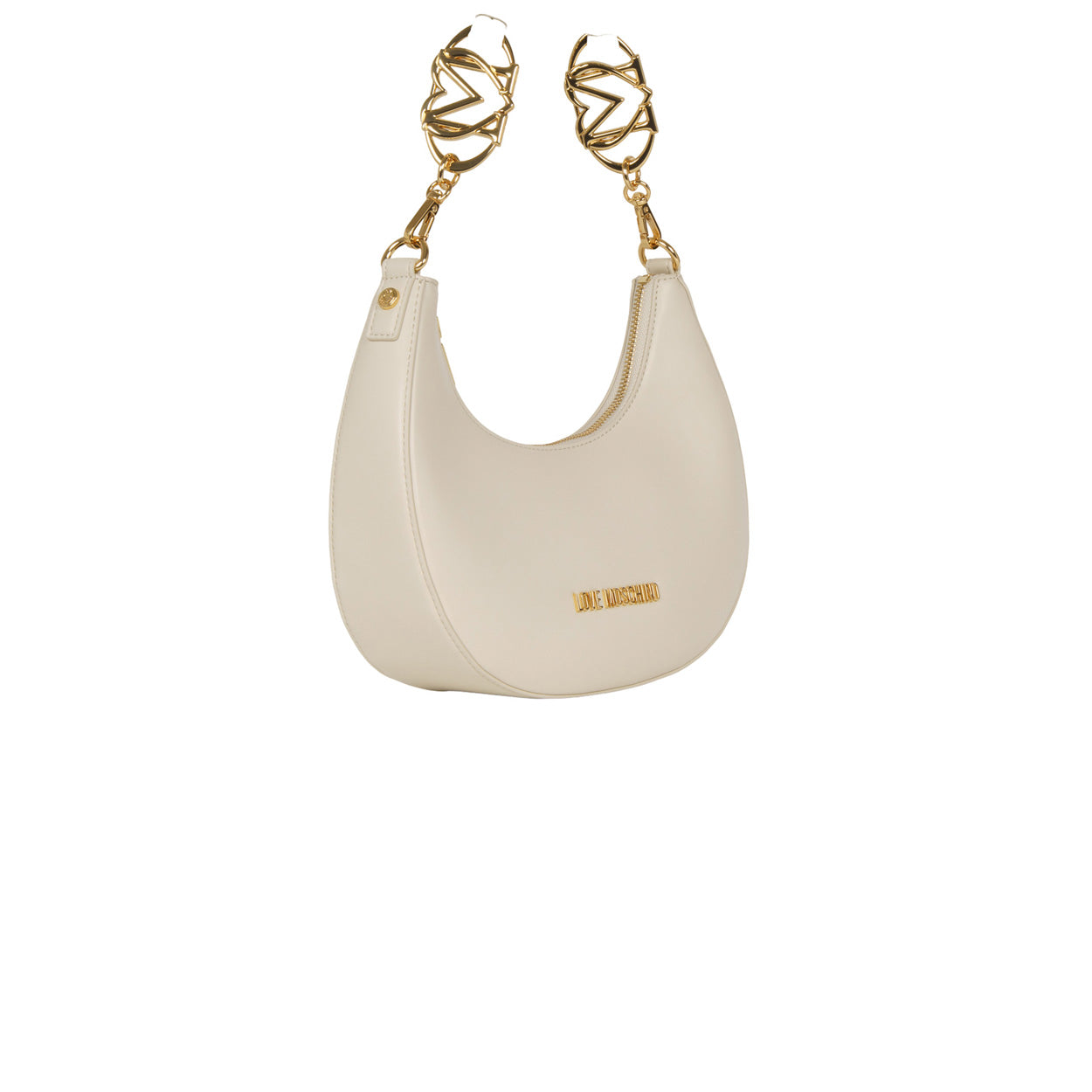 Borsa a spalla avorio di LOVE MOSCHINO in ecopelle con chiusura con zip, logo ed accessori in metallo oro. Misure 26x21x7cm.