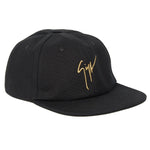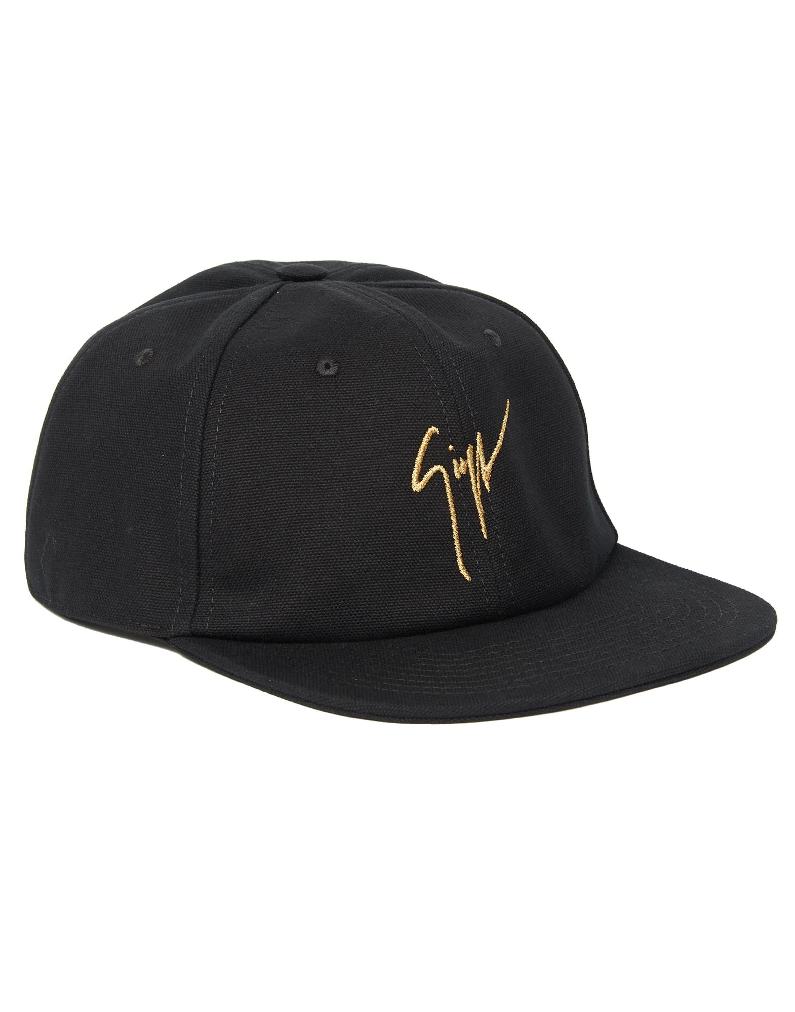Lo stile inimitabile dei cappelli Giuseppe Zanotti. Tomaia in canvas nero con logo Signature ricamato oro. Visiera semirigida. Chiusura regolabile. Colore: nero, oro.