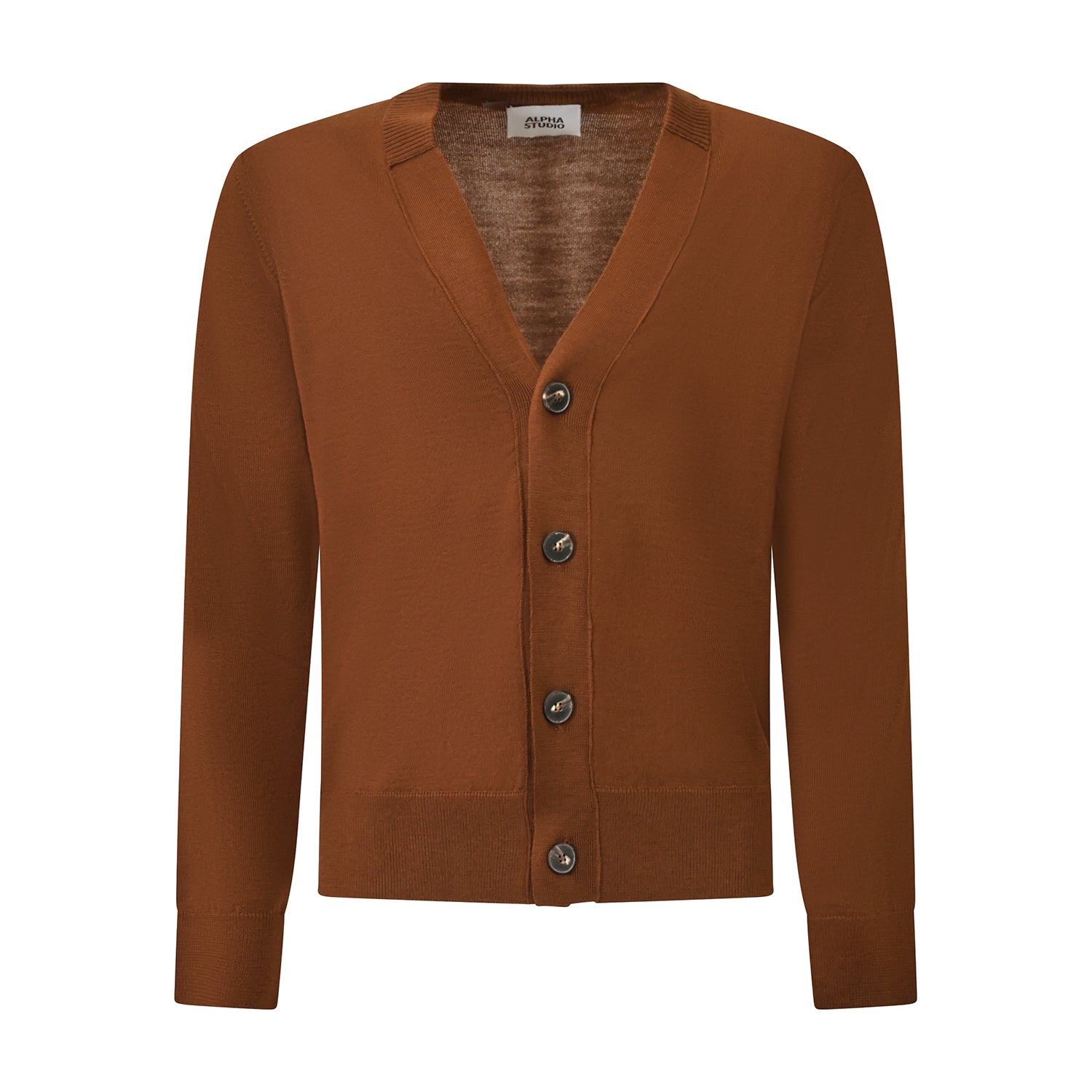 Cardigan tabacco di ALPHA STUDIO in lana merinos con chiusura con bottoni.