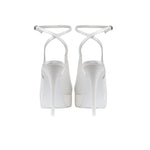 I decollete slingback da cerimonia di Sophie Sposa. Tomaia scalzata in seta avorio. Puntale a lancia con cavigliera a cinturino. Tacco 11 cm e plateau 2 cm. Colore: avorio.