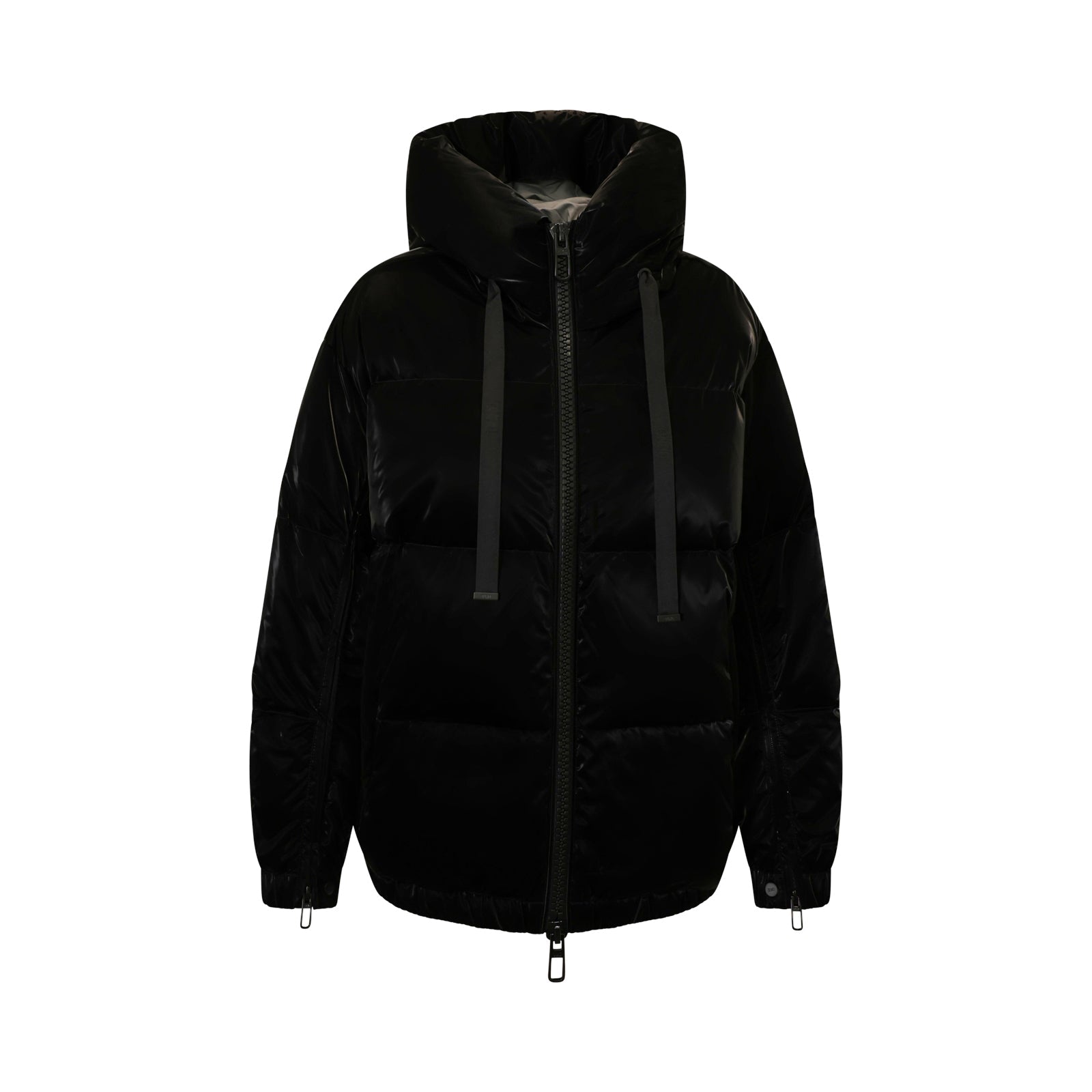 Piumino GLAZE nero di DUNO in lana con effetto velluto, chiusura con zip, lunghezza corto.