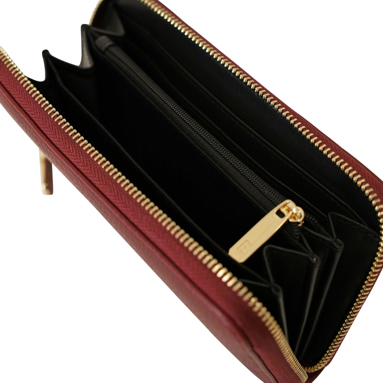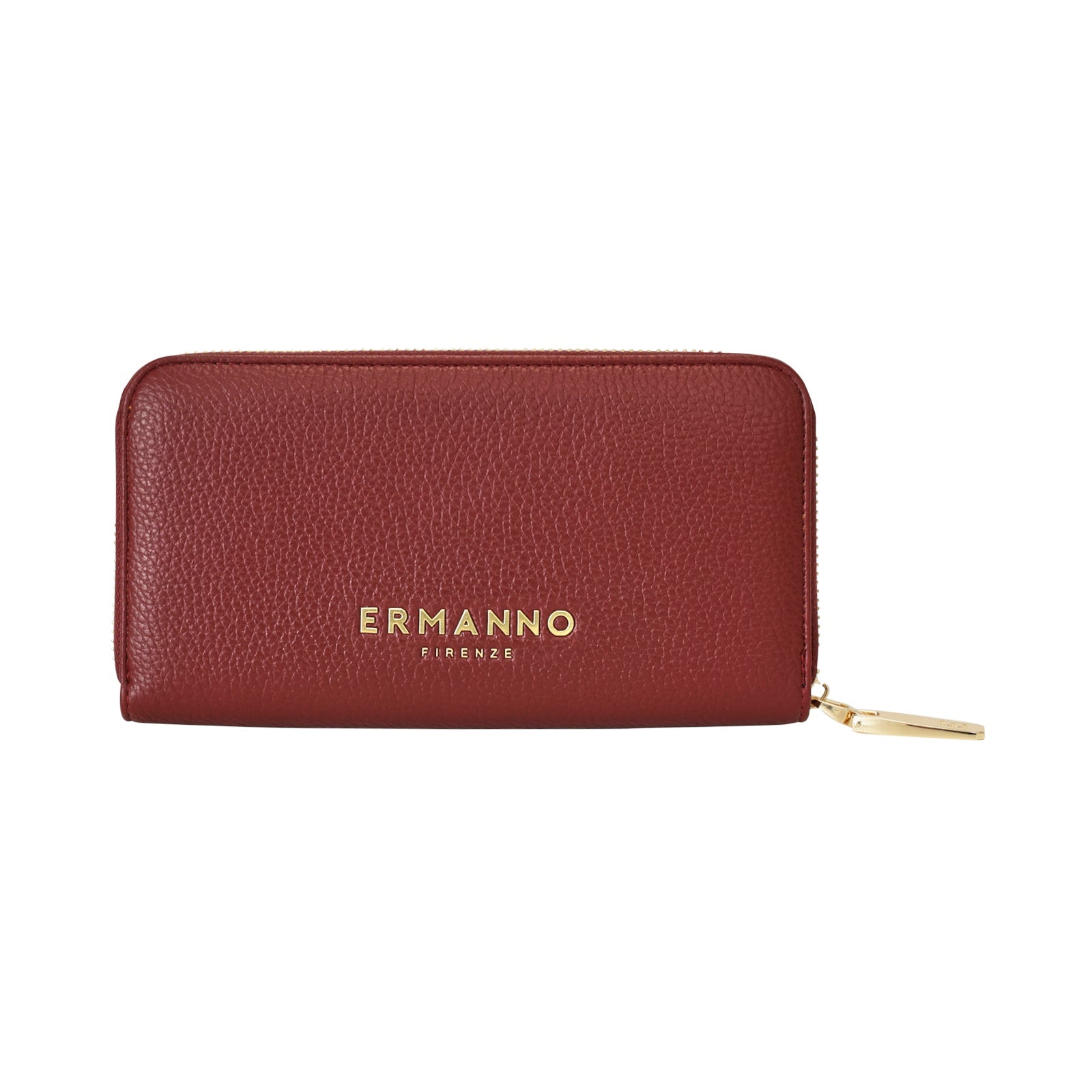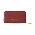Portafogli VICTORIA rosso di ERMANNO SCERVINO in ecopelle con effetto bottalato, logo con profili in metallo oro, chiusura con zip all around. Misure 20x10x3 cm.