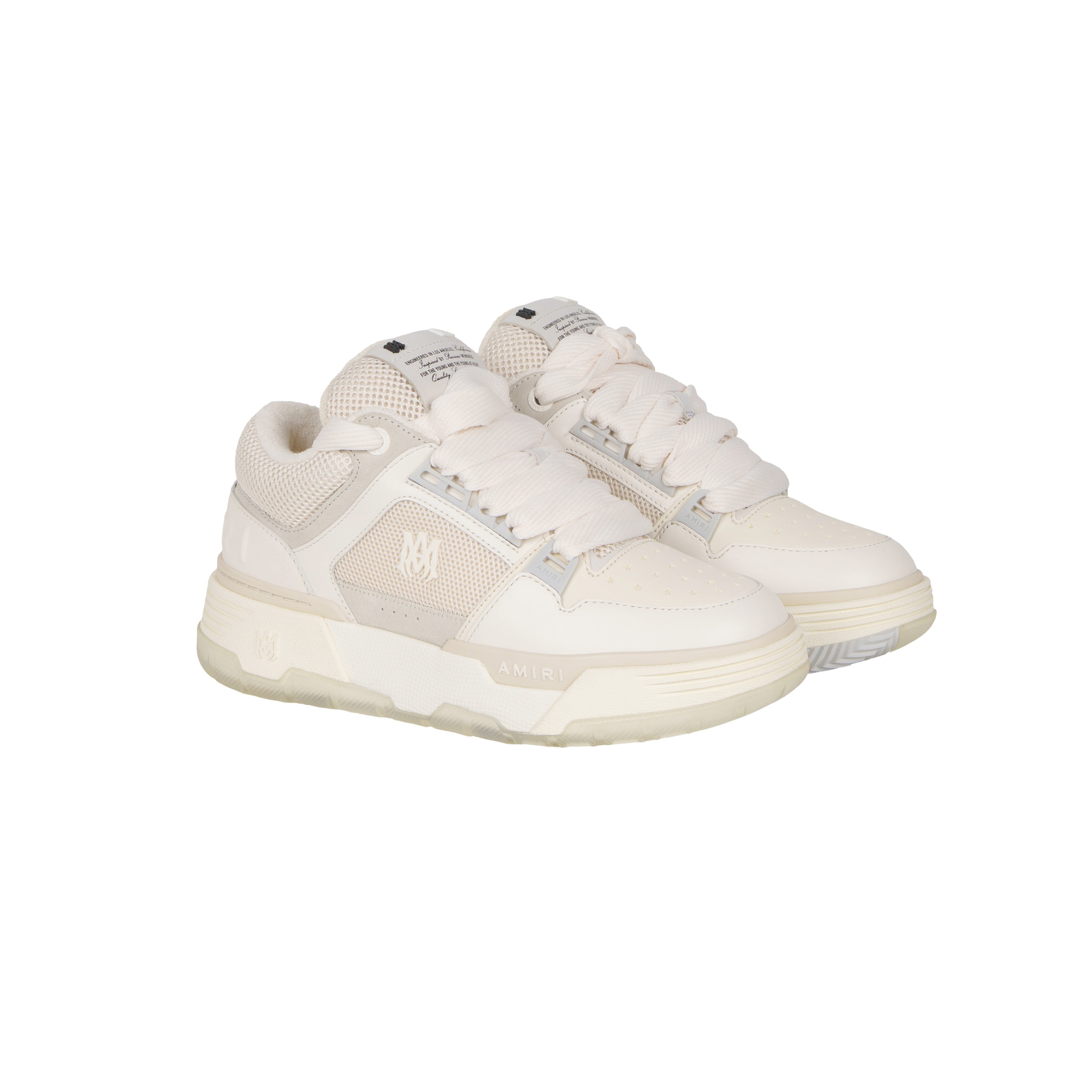 Sneakers MA-1 beige di AMIRI in tessuto con profili in pelle bianca, logo in bianco e fondo in gomma.