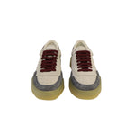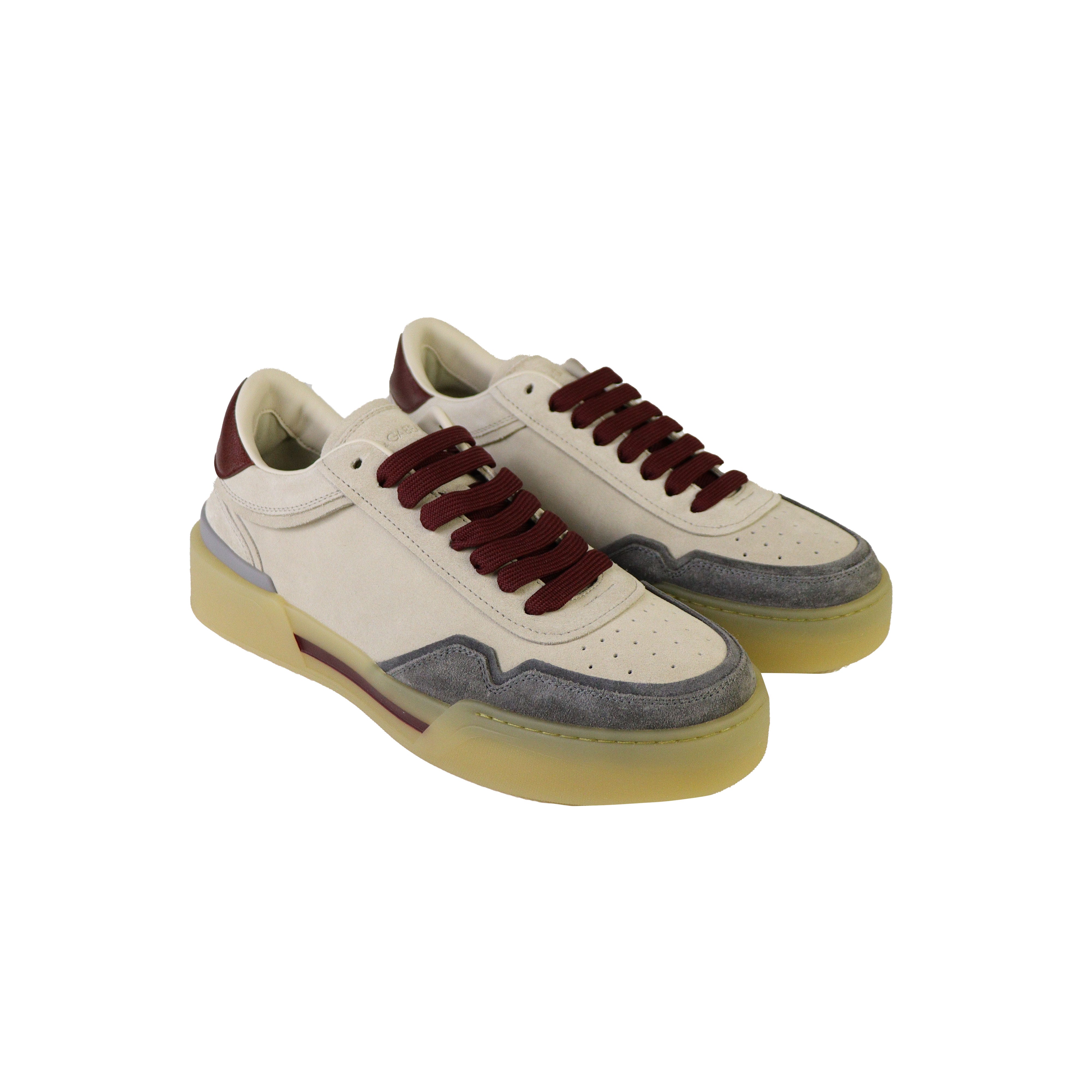 Sneakers NEW ROMA di DOLCE e GABBANA realizzata in camoscio beige e grigio.. Tallone in pelle bordeaux e lacci in bordeaux.. Fondo in gomma beige