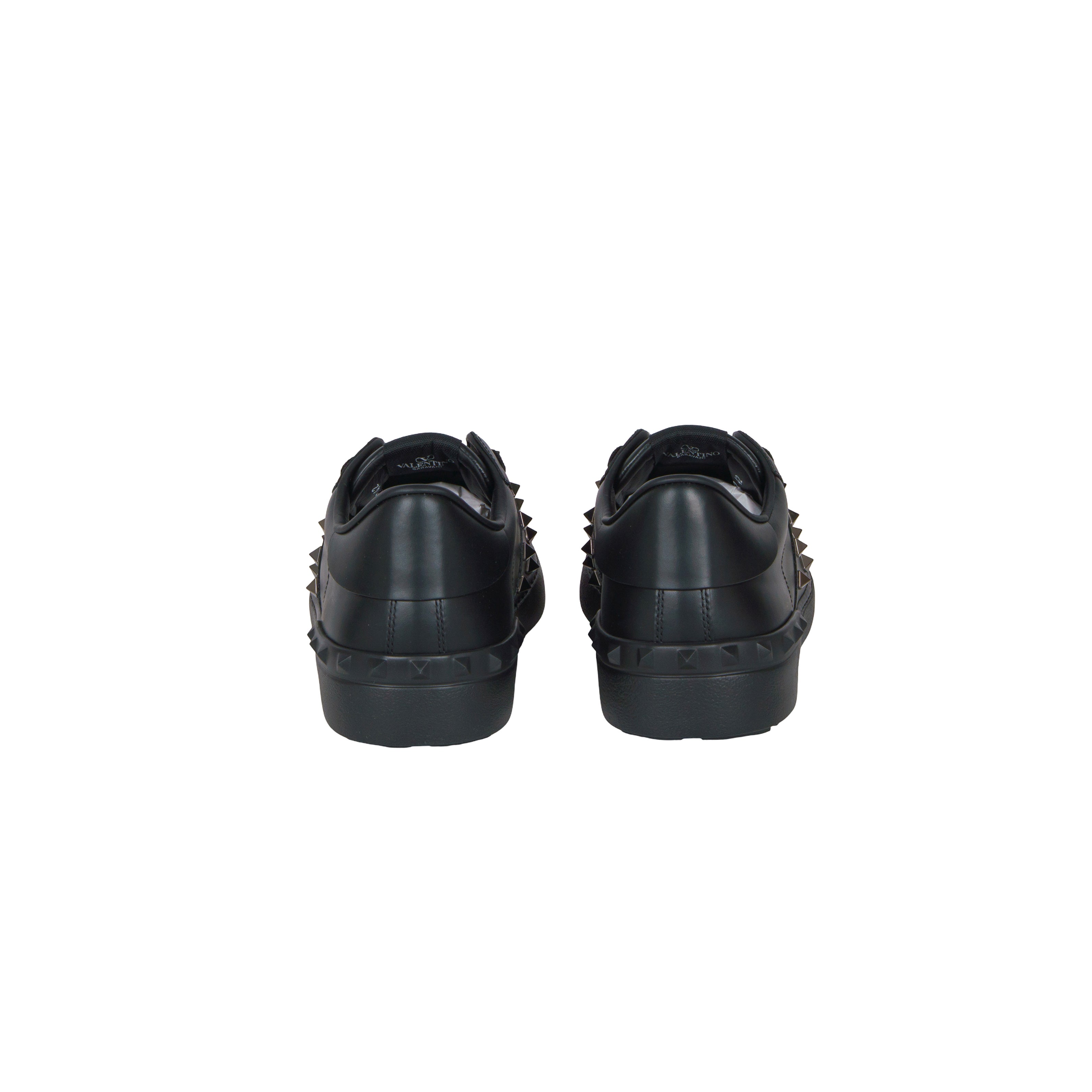 Sneakers ROCKSTUD UNTITLED nera di VALENTINO GARAVANI in pelle con fascia con borchie in metallo acciaio, fondo in gomma con dettaglio borchie in gomma sul retro ed etichetta speciale "11".