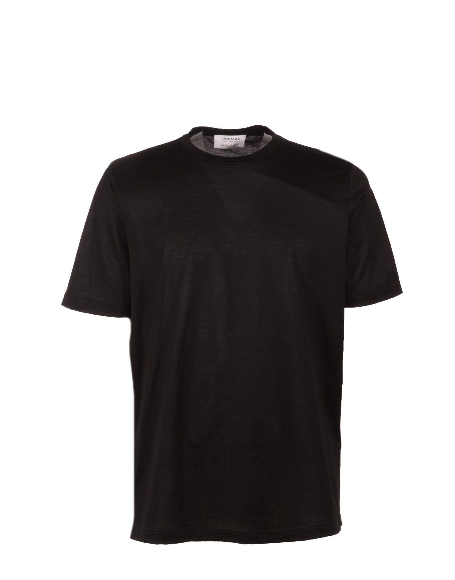 Le linee perfette delle shirt Gran Sasso. T-shirt in cotone nero. Girocollo e mezza manica. Colore: nero.