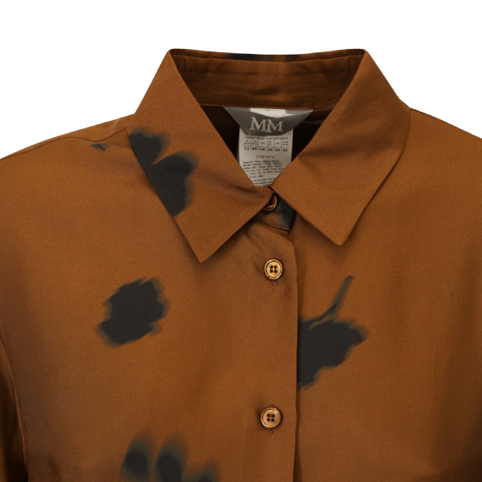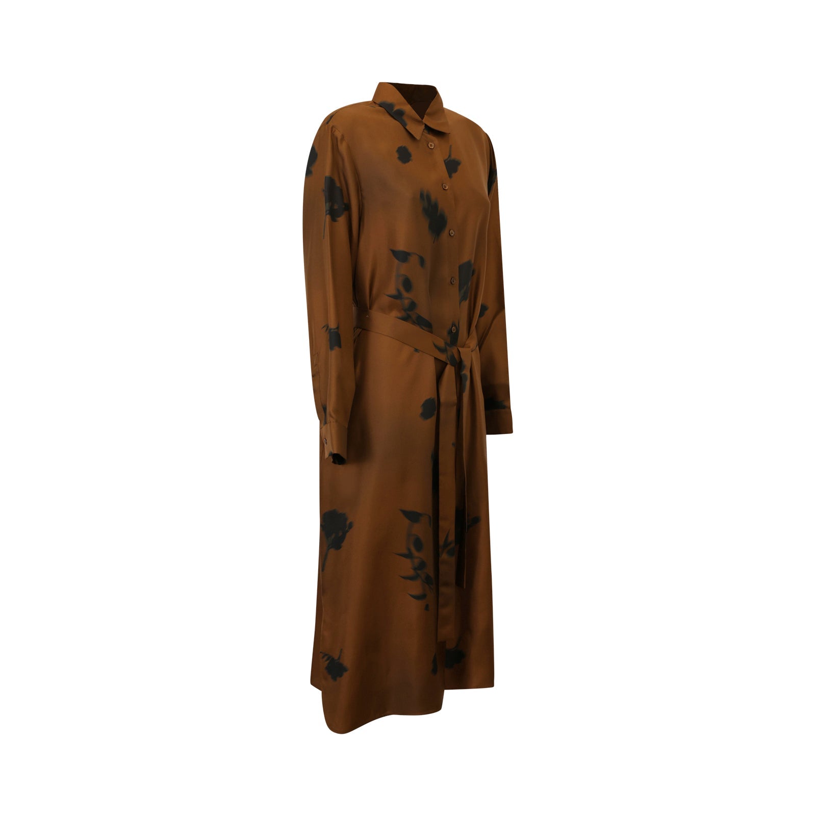 Abito chemisier JADI marrone di MM MAX MARA in seta con collo camicia, chiusura con bottoni, cintura in vita, stampa floreale a contrasto.
